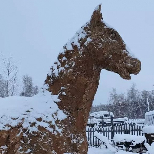 Якутский скульптор создал статую лошади из конского навоза
