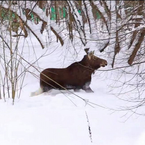 Две лосихи забрели на стройку в Москве