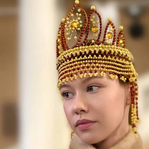 В Калининграде изготовили кокошник из 1145 элементов янтаря