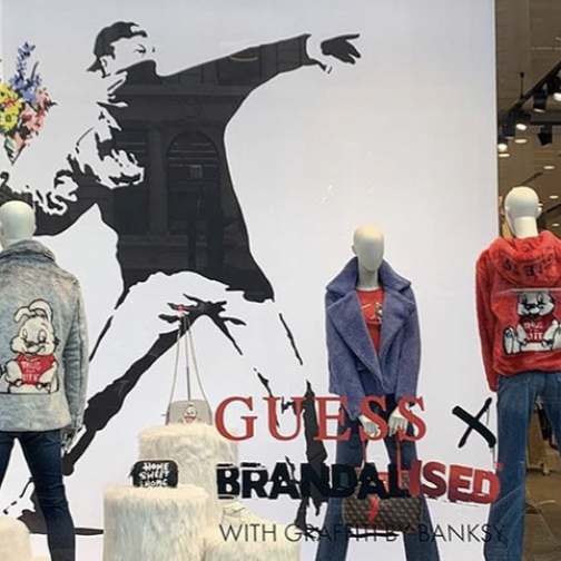 Бэнкси обвинил бренд Guess в краже его граффити. Он призывает подписчиков украсть что‑то из магазина