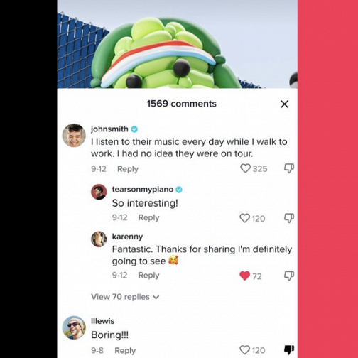 На комментариях в TikTok появится кнопка дизлайка