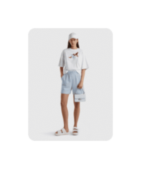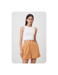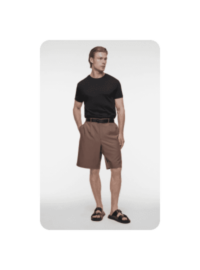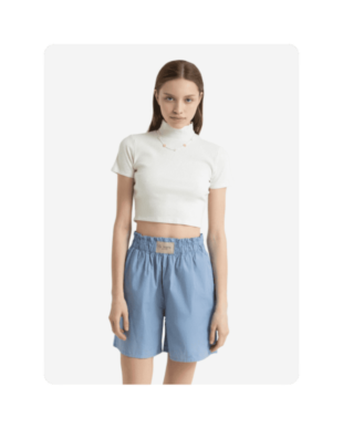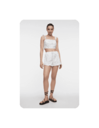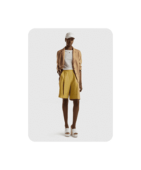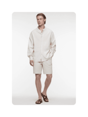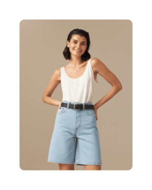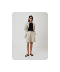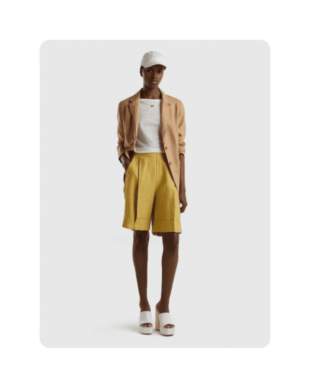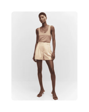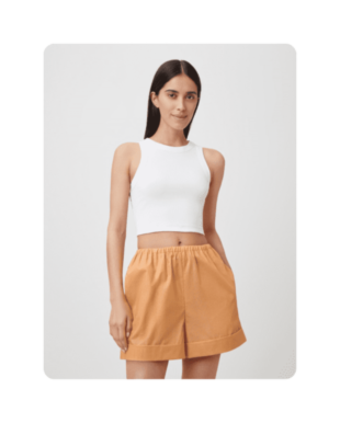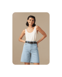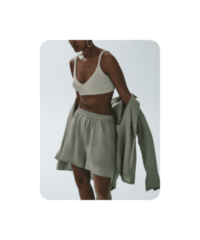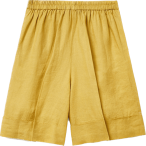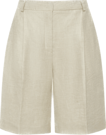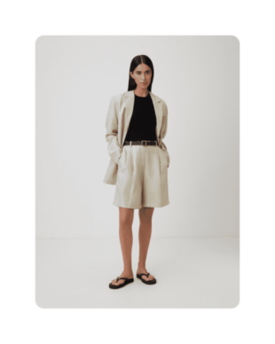 Один из наших любимых летних материалов: в льняных вещах не жарко, а еще они выглядят в по-хорошему расслабленно и нарядно, даже будучи слегка мятыми. К льняным шортам можно добавить рубашку из того же материала — у многих брендов найдутся уже готовые комплекты — или спортивный кроп-топ и легкую рубашку.