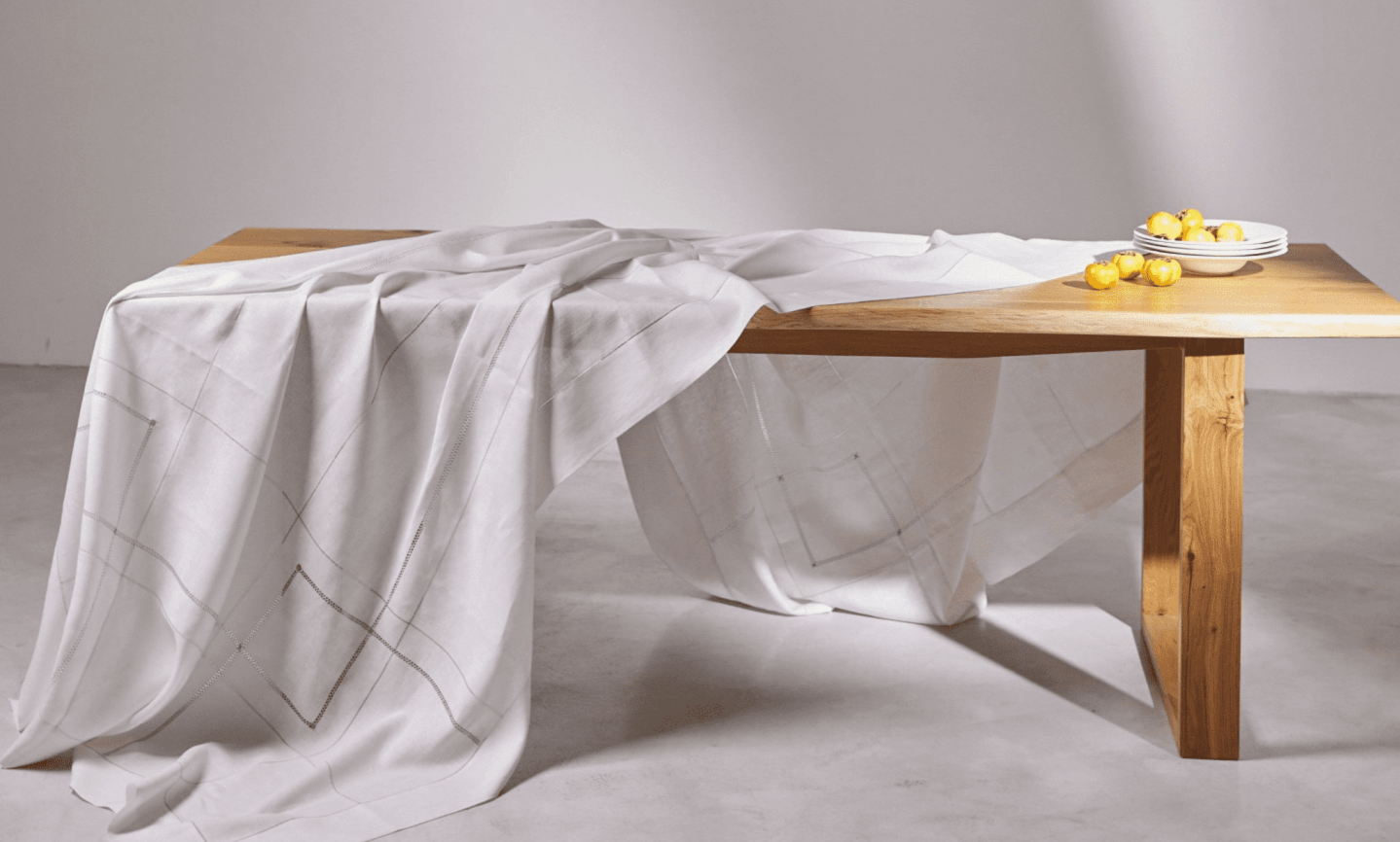 В каталоге марки «Дом гедонистов» найдется все необходимое для эстетичной сервировки стола, в том числе винтажные скатерти, элегантные салфетки и плейсматы. Многие изделия дополнены вышивкой ручной работы (скатерть с ней обойдется в 4000 р.).