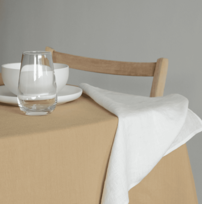 В ассортименте WE-A-VE найдутся скатерти, кухонные полотенца, салфетки, прихватки и другие аксессуары изо льна, смягченного по специальной технологии. Бренд предлагает как нейтральные, так и яркие варианты с принтами — например, скатерть в красно-белую клетку за 10 900 рублей.