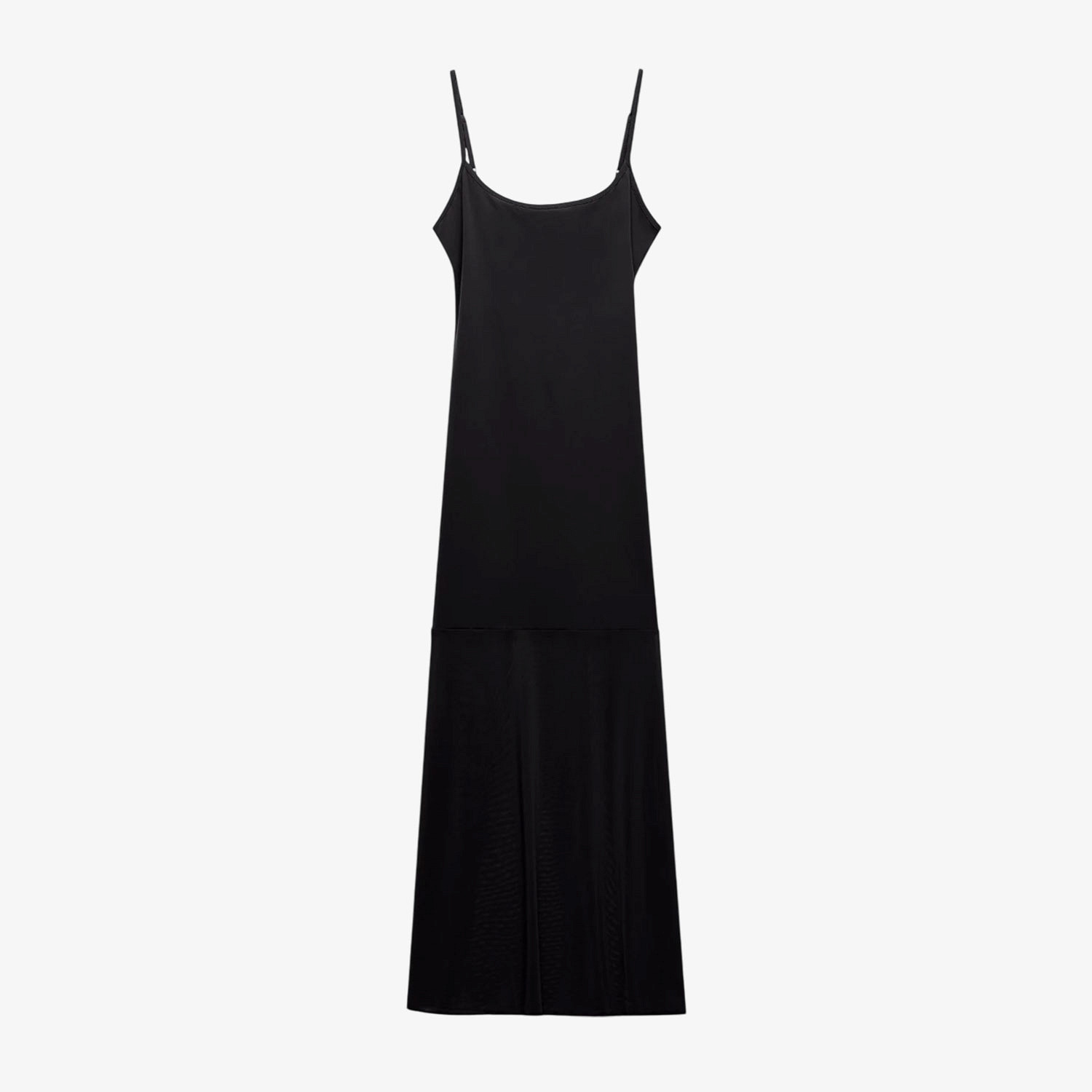 Стиль самой Дженны Ортеги за последние пару лет эволюционировал куда заметнее, чем у ее героини в сериале. К промо сериала 22-летняя актриса полностью вжилась в образ «гламурной вампирессы»: на ковровых дорожках и серьезных ивентах Ортега появляется в готических черных нарядах и полупрозрачных скульптурных платьях, напоминающих змеиную кожу. Самое вирусное — облегающее платье из осенней коллекции небольшого, но модного бренда Ashi Studio, имитирующее влажную кожу. Среди локальных марок похожее можно найти у бренда Neegosh.