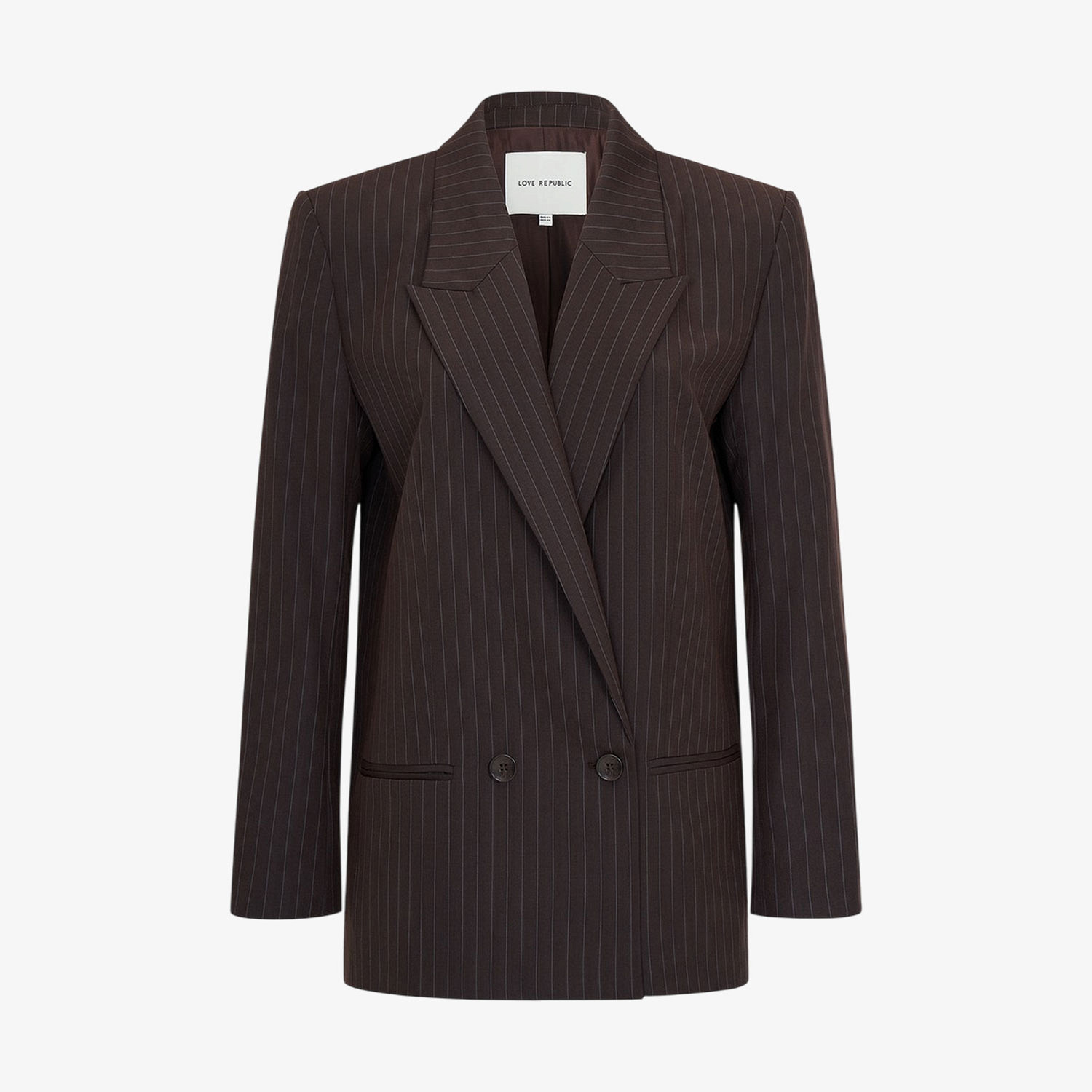 Серый костюм авторства Ann Demeulemeester актриса сочетает с черной блузой с пышными оборками и мощным лип-комбо в духе 1990-х — коричневой матовой помадой с заметным контуром.