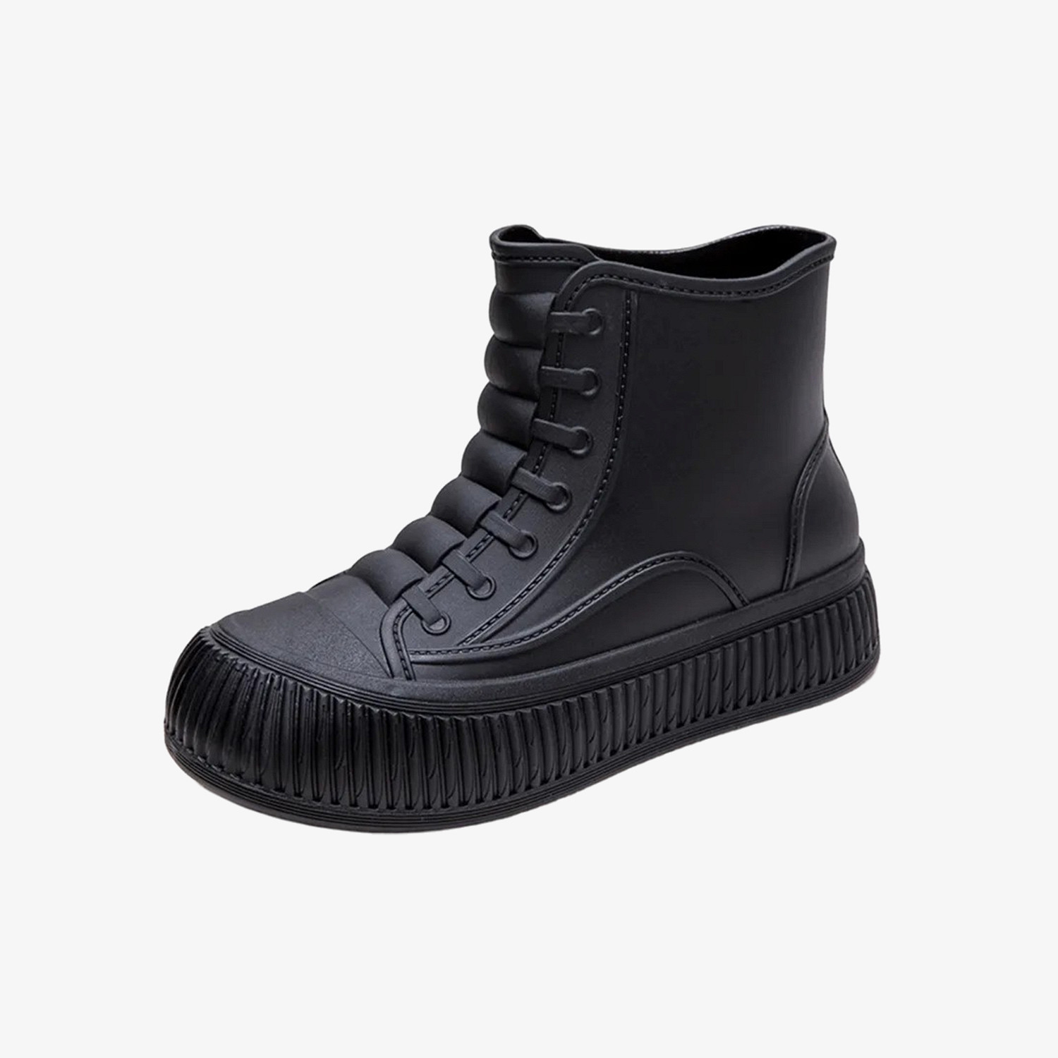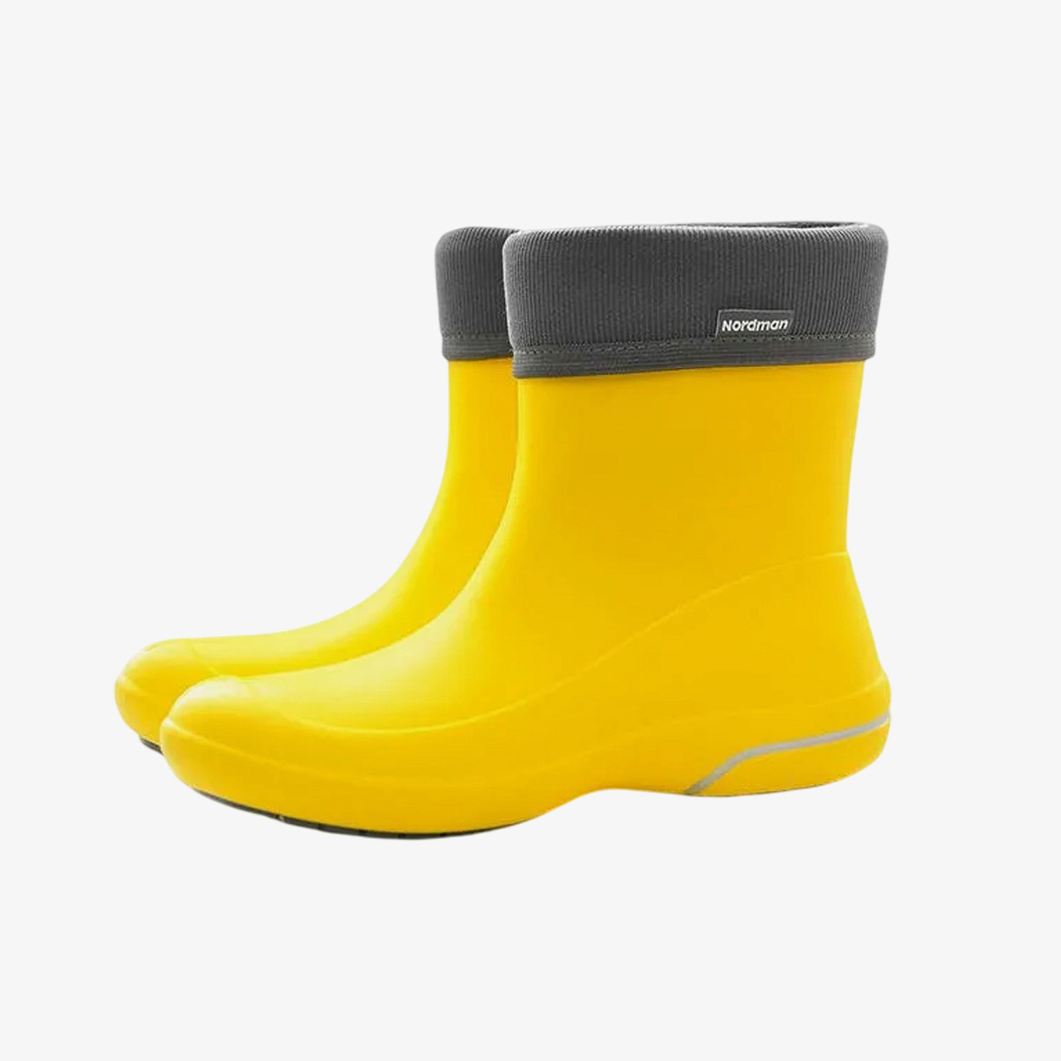 Идеально — плюс 5 градусов и выше. В такую погоду в резиновых сапогах не будет холодно или скользко. При температуре ниже нуля резиновую обувь стоит носить аккуратно — во-первых, от холода может потрескаться или деформироваться сам материал; во-вторых, ногам будет банально холодно (но спасут шерстяные носки); в-третьих, скользко! Если все же планируете носить резиновые сапоги в гололед, ищите пару с рельефной подошвой с зубчиками — она покажет лучшее сцепление с поверхностью нежели привычная гладкая.