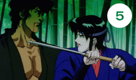 Аниме Ёсиаки Кавадзири поражает двумя взаимоисключающими вещами: лютой жестокостью и запредельной нежностью. Странствующий воин Дзюбей Кибагами влюбляется в девушку-ниндзя Кагэро и вместе с ней противостоит восьми демонам Кимона. Страшно представить, какому количеству постсоветских детей это аниме принесло ночные кошмары, ведь в финале эта фэнтезийная тямбара (японское историко-приключенческое кино) делает так же больно, как вспарывающий кожу сюрикен.