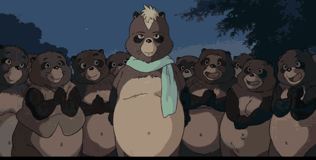 Такое возможно только в аниме Исао Такахаты: история волшебной цивилизации енотовидных собак, живущих по соседству с людьми и противостоящих экспансии их населенных пунктов, не сводится ни к умилительной гэг-комедии, ни к сказке, а всю дорогу остается эпичным фэнтези — в том же смысле, как, скажем, «Властелин Колец», и с тем же уровнем брутального реализма, как беспощадные мультфильмы из жизни животных Мартина Розена («Отчаянные псы», «Обитатели холмов»).