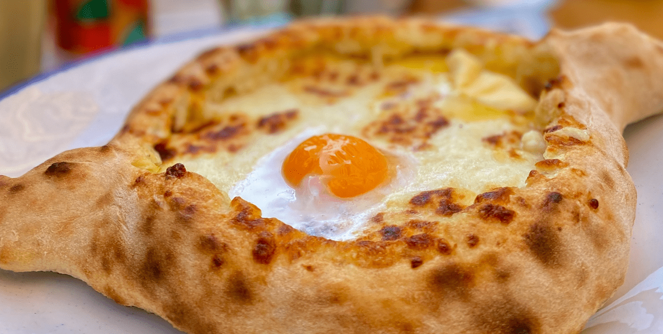 Еще одно важное блюдо кавказской кухни — хачапури по-аджарски, лодочка. Лучший открытый пирог с сыром и яйцом — в кафе «Под пальмой».
