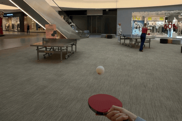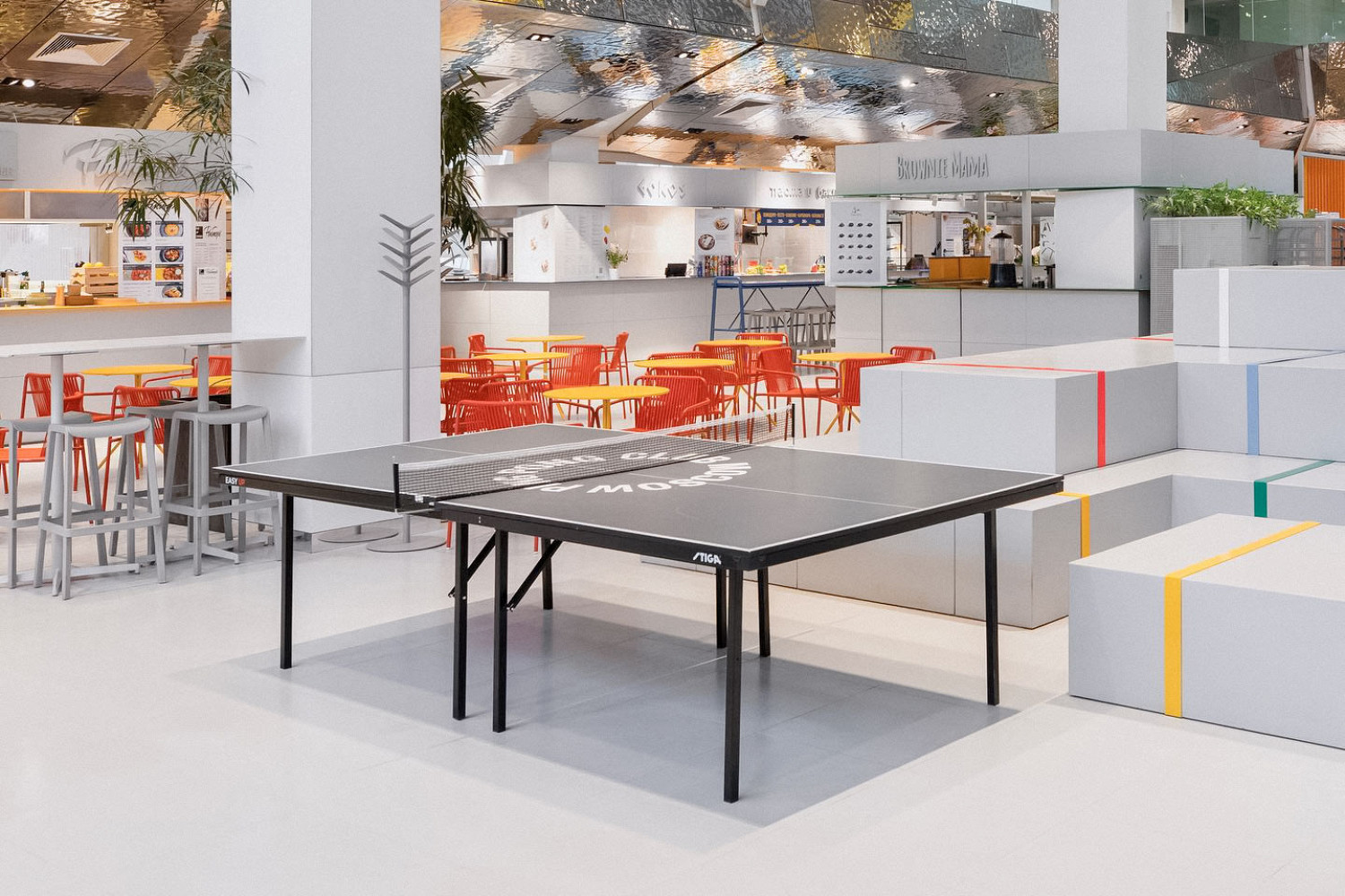 В этом торговом центре можно бесплатно поиграть в пинг-понг с 10.00 до 22.00. Столы находятся на первом этаже, рядом с пространством «Встречи на лестнице». Ракетки с собой брать не нужно: инвентарь выдают на стойке информации.