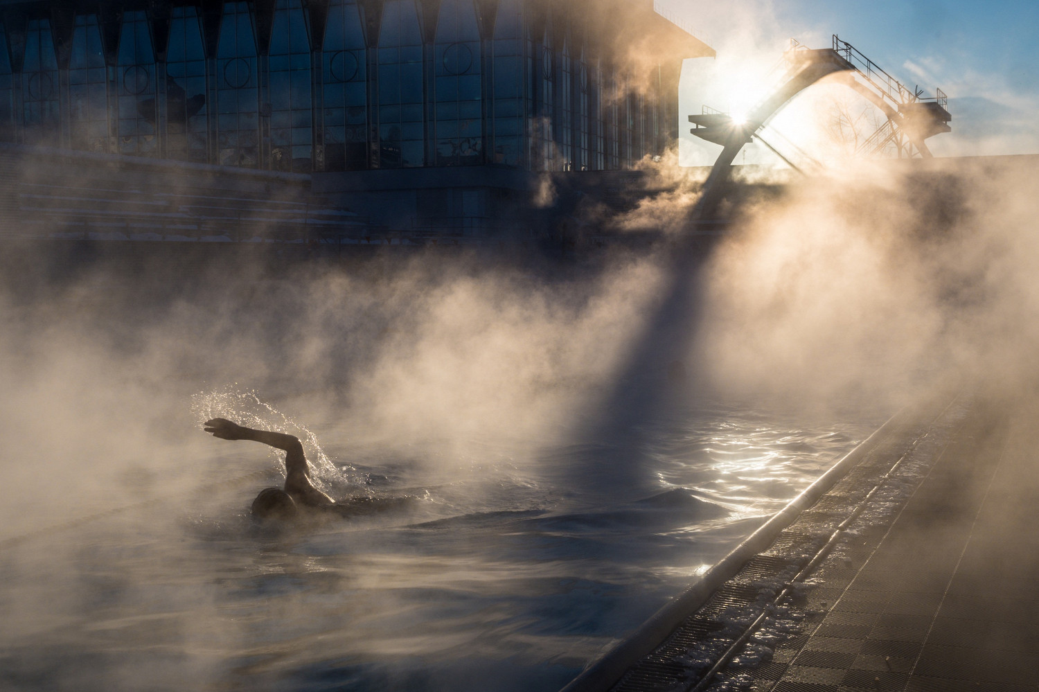 Вариант для тех, кто презирает рестораны с сердечками в меню. Свидание на дорожке в бассейне — 10 из 10. А если это еще и открытый бассейн, от воды поднимается пар, а вокруг все в смешных резиновых шапочках? Тянет уже на 100 из 10.
