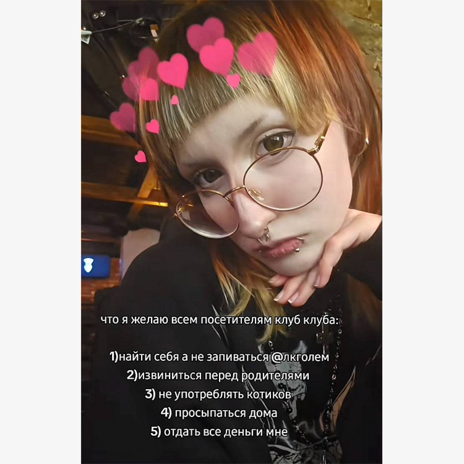 Летом 2021 года я впервые пришла в клуб «Клуб», тогда новый бар из сети «Зинзивера». Там тусовались стильные богемные ребята, учащиеся в «Вышке», МГУ и РГГУ. Подвал на Покровке показался мне андеграундным и элитарным баром, особенно по сравнению с «Зинзивером», от которого тогда уже подустали. С лета 2022-го я начала постоянно проводить выходные в «Клубе» и словила гиперфикс. Каждое воскресное утро писала друзьям, что мы больше туда не ходим, но в пятницу снова оказывались там.