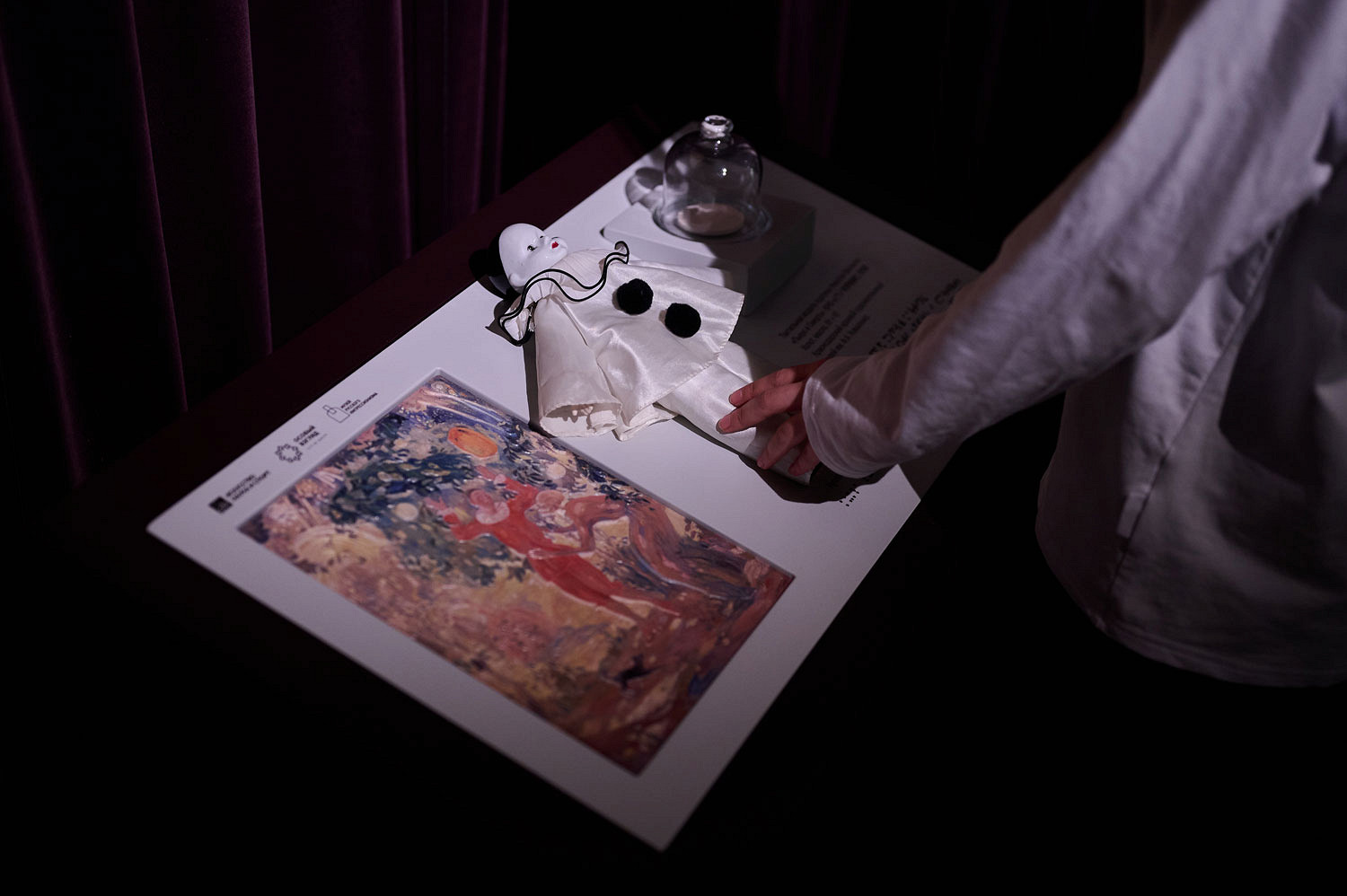 В витрине выставили куклу Пьеро. Весной 1920 года поклонники подарили ее Александру Блоку вместе с парным Арлекином. Выбор фанатов не случаен: оба героя действуют в пьесе «Балаганчик». Пьеро и Арлекина вскоре разлучили, первую куклу Блок презентовал подруге Надежде Коган-Нолле, а вот Арлекина оставил себе.