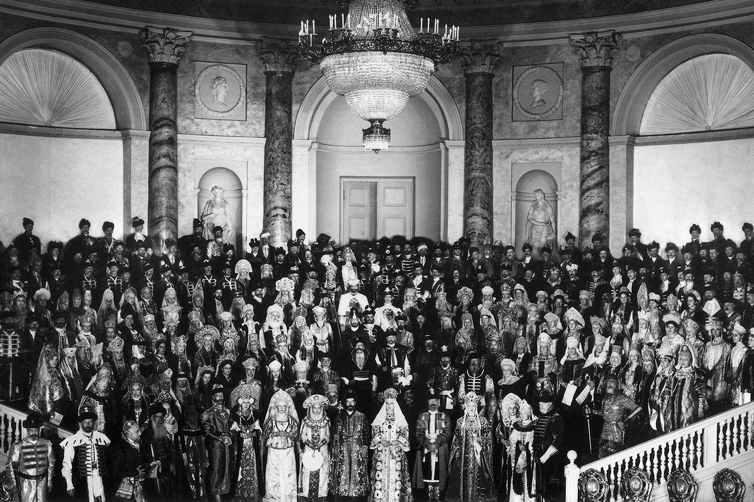 Самым знаменитым маскарадом императорской России стал костюмированный бал 1903 года, его идея принадлежала жене Николая II. Александра Федоровна предложила придворным переодеться в костюмы допетровской эпохи, которую Николай считал золотым веком в истории страны.