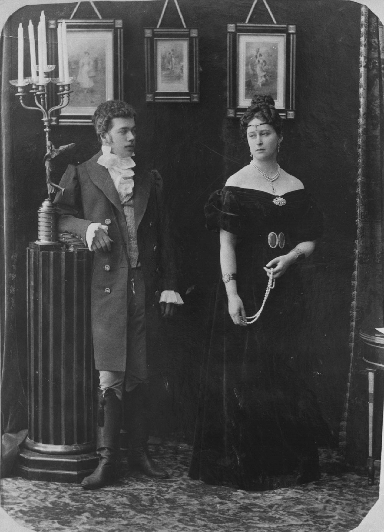 Великая княгиня Елизавета Федоровна в роли Татьяны и великий князь Николай Александрович в роли Евгения Онегина, 1890