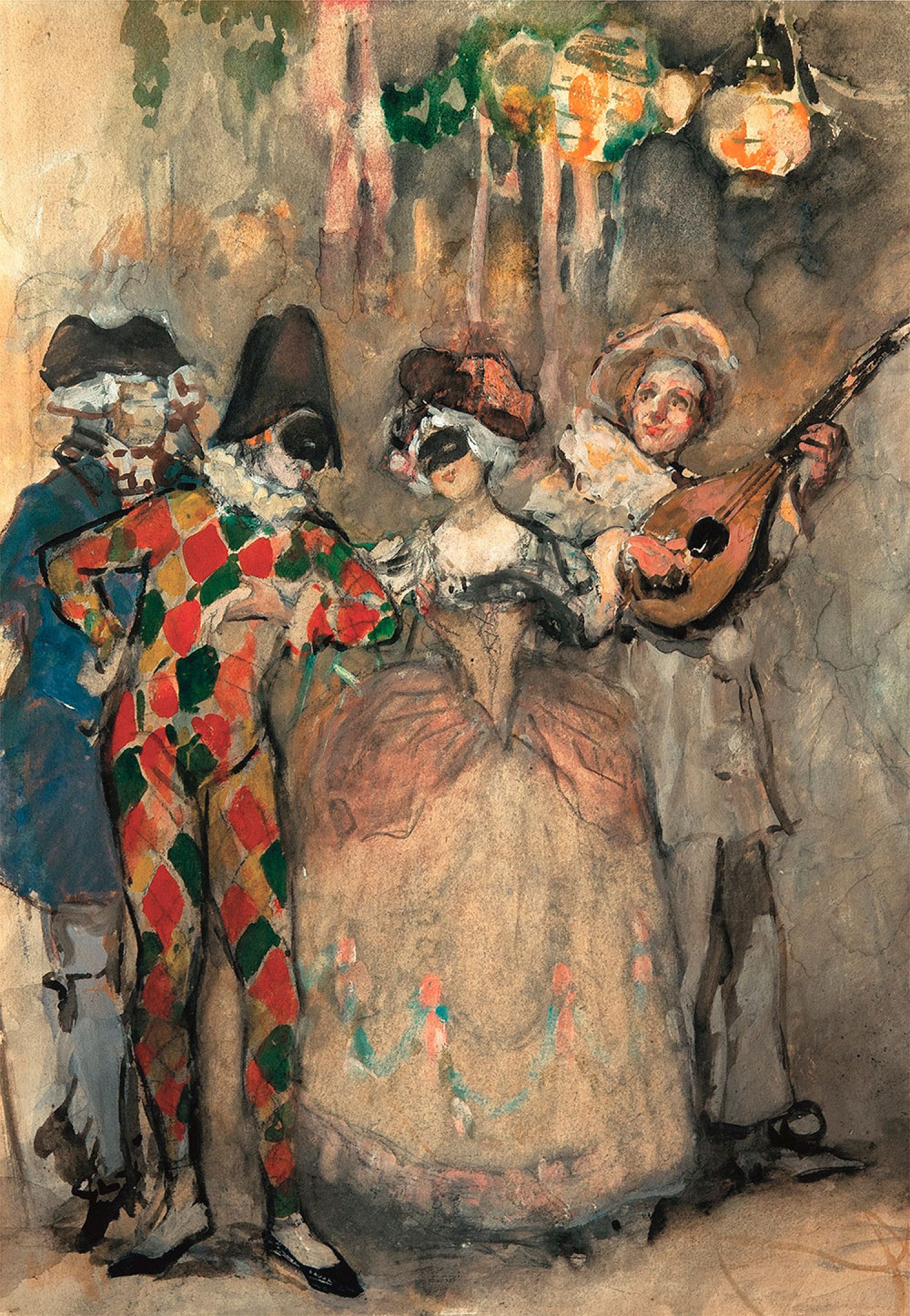 Образы персонажей итальянской комедии дель арте интересовали художников рубежа XIX–XX веков, особенно представителей объединения «Мир искусств». Поэтому Константин Сомов, Сергей Судейкин, Николай Милиоти – главные имена, чьи работы заполнили отдельный зал выставки.