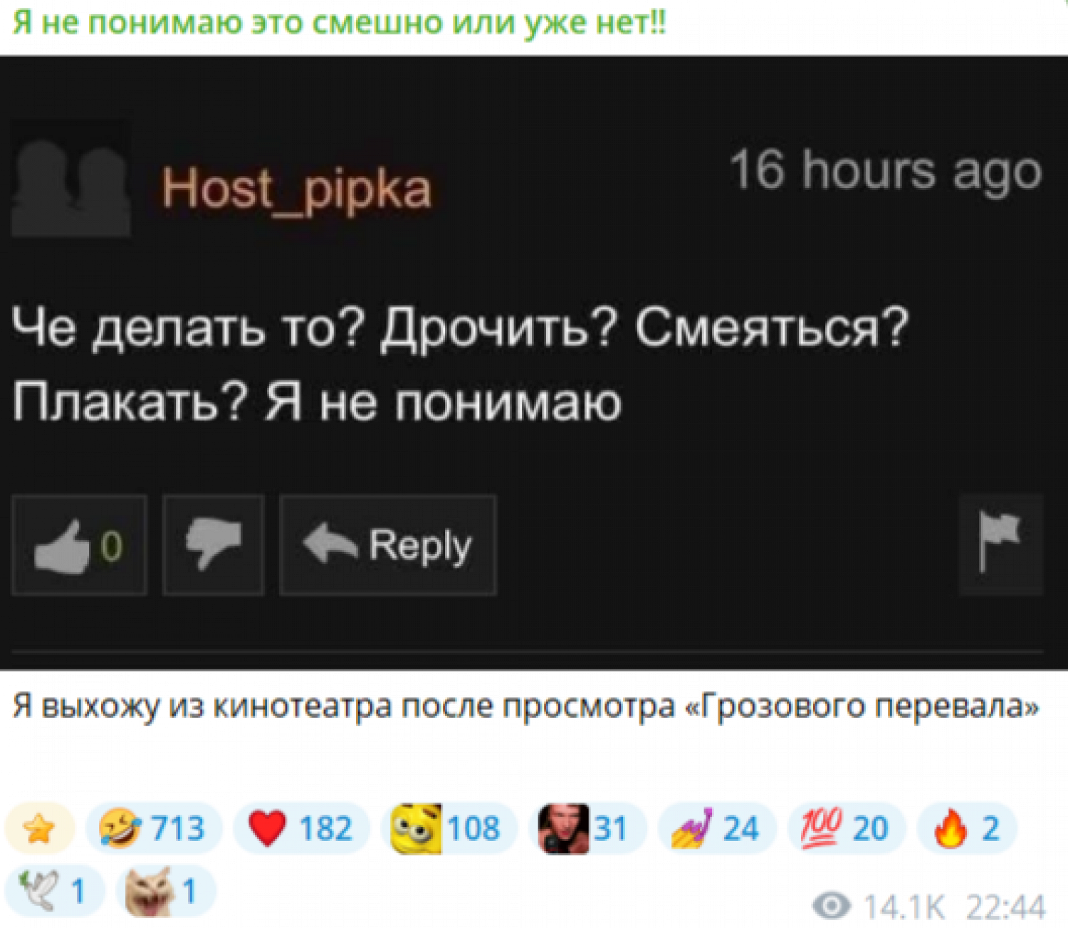 «Весь кинозал девчонок во время „Грозового перевала“, когда Джейкоб Элорди поднял Марго Робби за корсет одной рукой», — видео с такой надписью появился в телеграм-канале «Возвращение в hiraeth, или охота на хозиера».