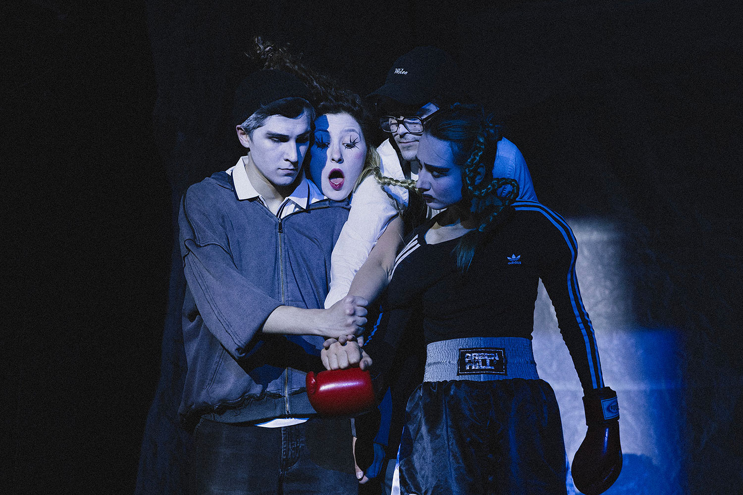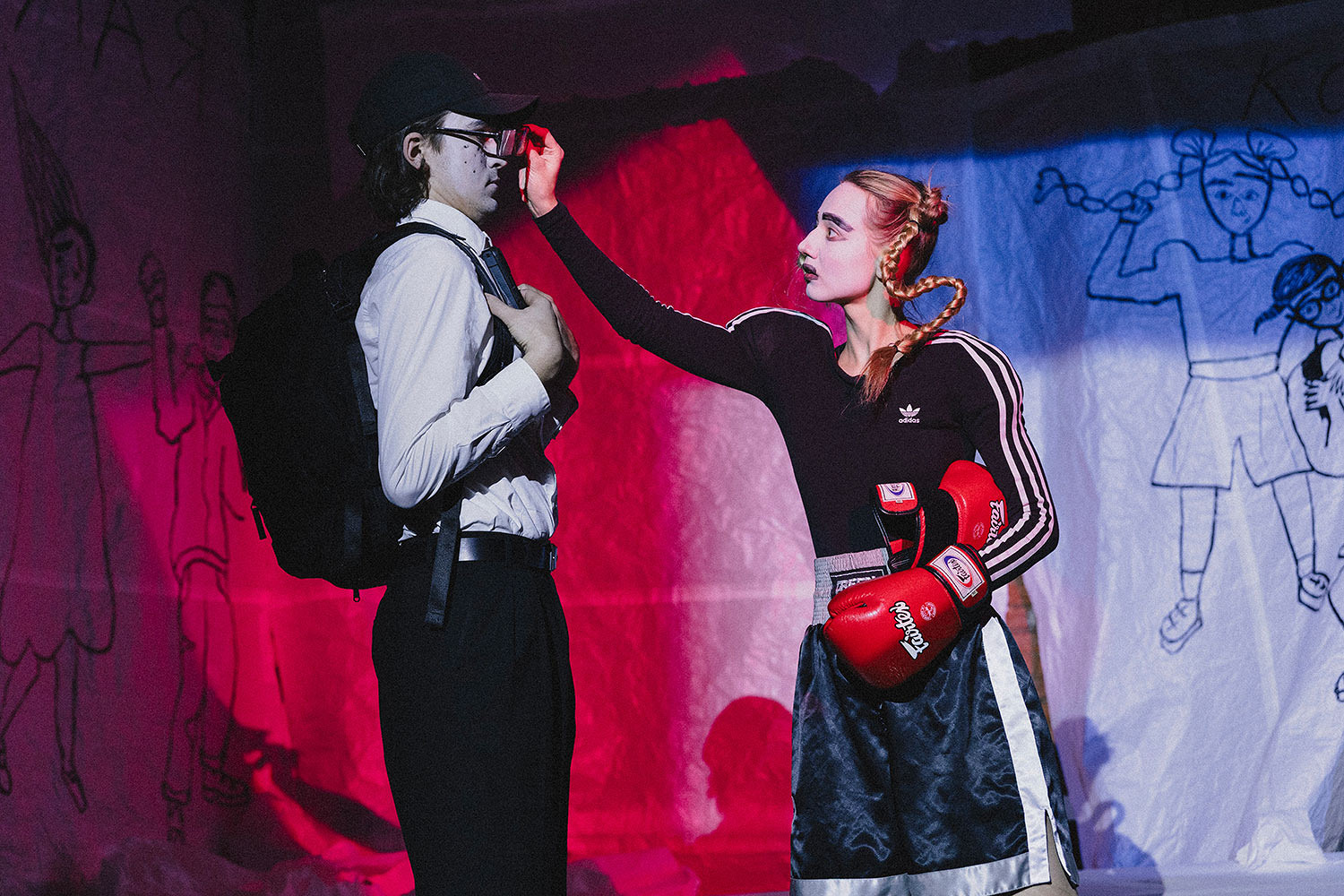 «Мы очень много ездили, пока учились. В каждой поездке знакомились с людьми, делали что-то полезное, привозили какую-то работу: спектакль, концерт или мастер-класс. Это очень интересный и важный для нас обмен и то, что хочется сохранить. Наша идентичность в том, что мы комьюнити, „общество любителей театра, литературы и музыки“. А еще мы можем сделать что угодно сами, своими силами: придумать, склеить, сыграть. Сами монтируем спектакли, ставим декорации, помогаем художникам клеить их. Денис Хохрин пишет пьесы, Даша учится на историка моды и создает костюмы, я учусь на режиссера — и все это мы приносим в театр».
