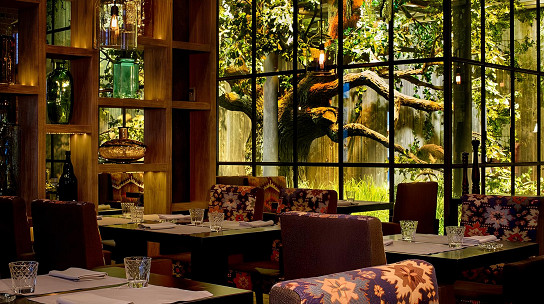 В большом панорамном ресторане на 85-м этаже башни «ОКО» в «Москва-Сити» все с размахом: кроме завораживающих видов на город с высоты птичьего полета, здесь большая открытая кухня с восьмиметровой русской печью, отдельный ледяной бар и трехуровневая детская комната. По выходным дети могут пройти мастер-классы с аниматорами, а со среды по воскресенье с 14.00 до 21.00 в ресторане работает няня.