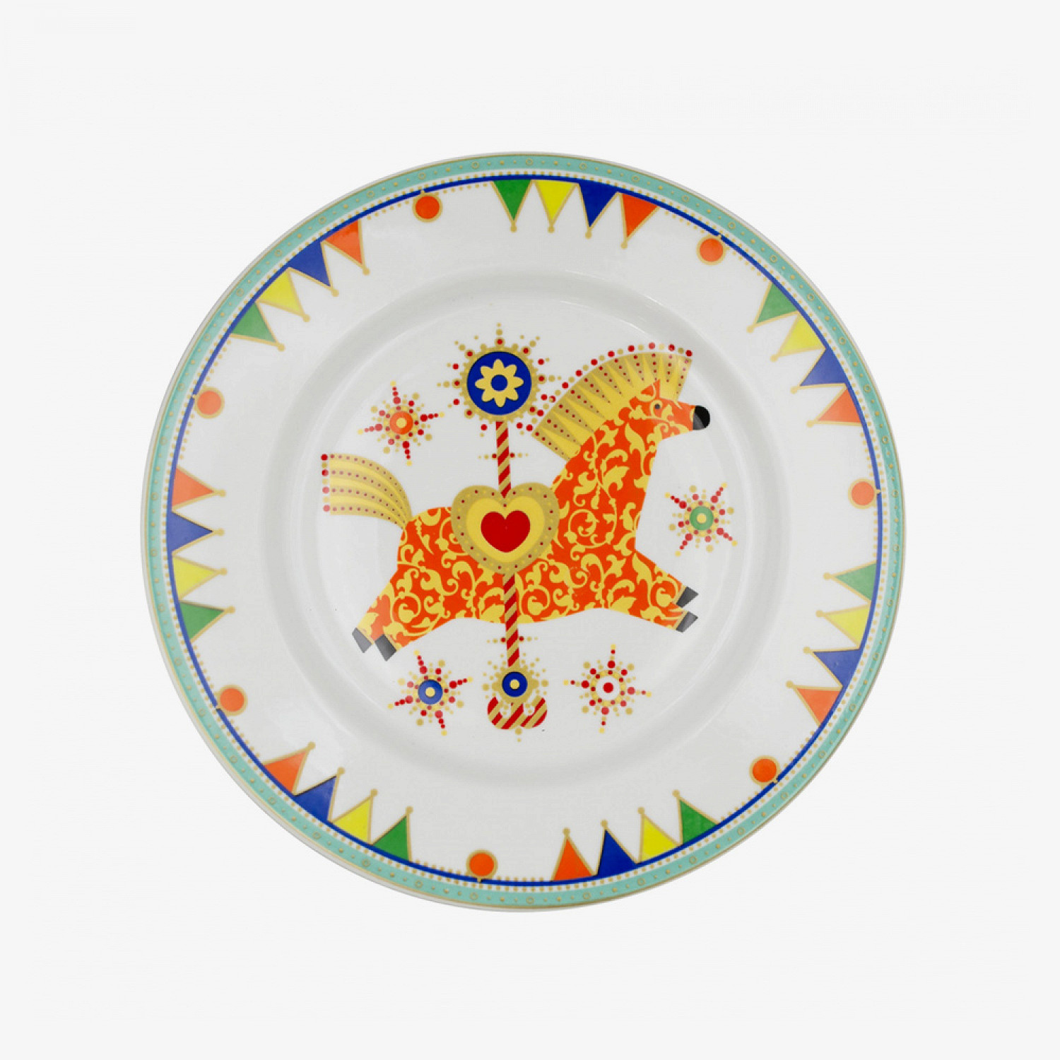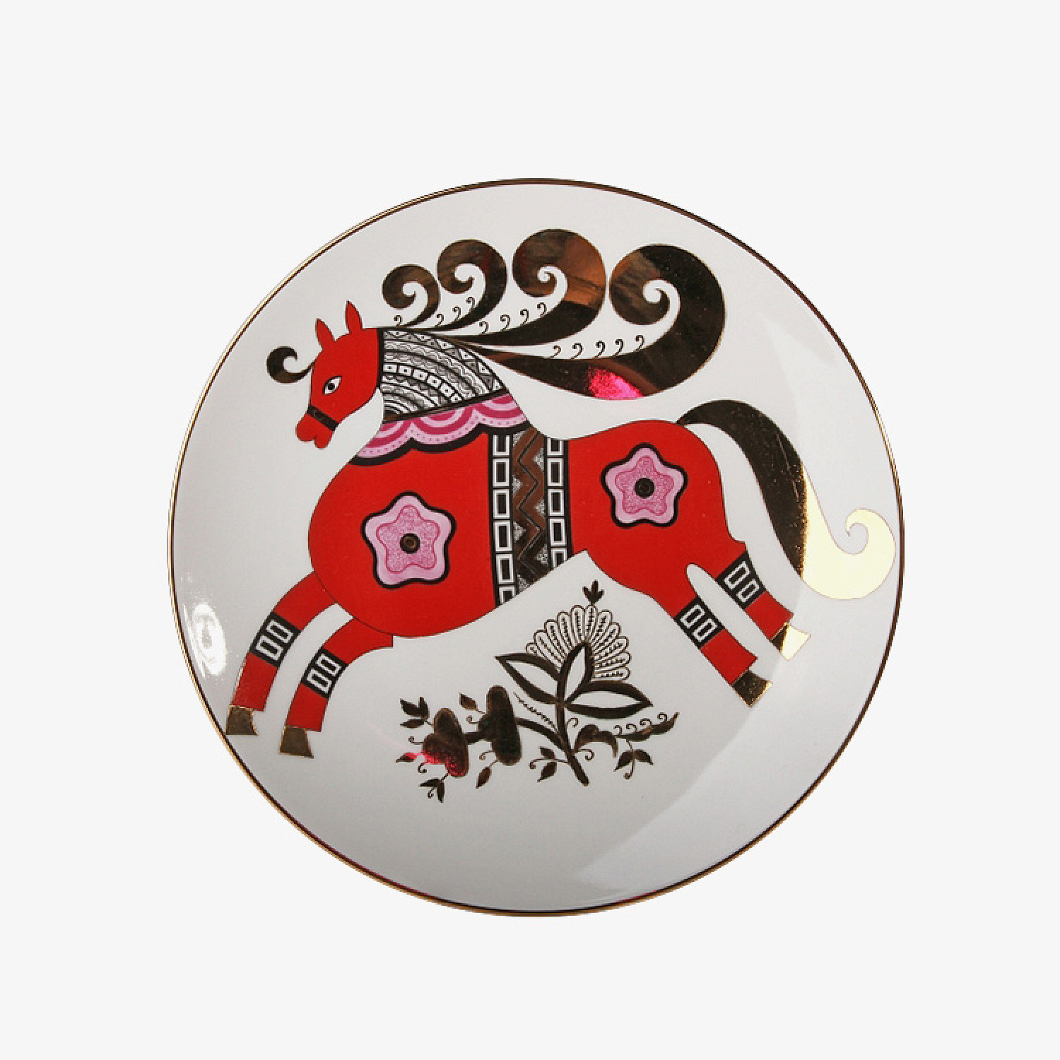 Конский сервиз или пара десертных тарелок со скромными пони — тут все зависит от ваших предпочтений и размаха торжества. Хорошо, если посуда будет радовать и после праздника, так что выбирайте то, чем будете пользоваться и в повседневной жизни. Тарелку Императорского фарфорового завода со сказочным конем или арт от Zorca и вовсе хочется повесить на стену.