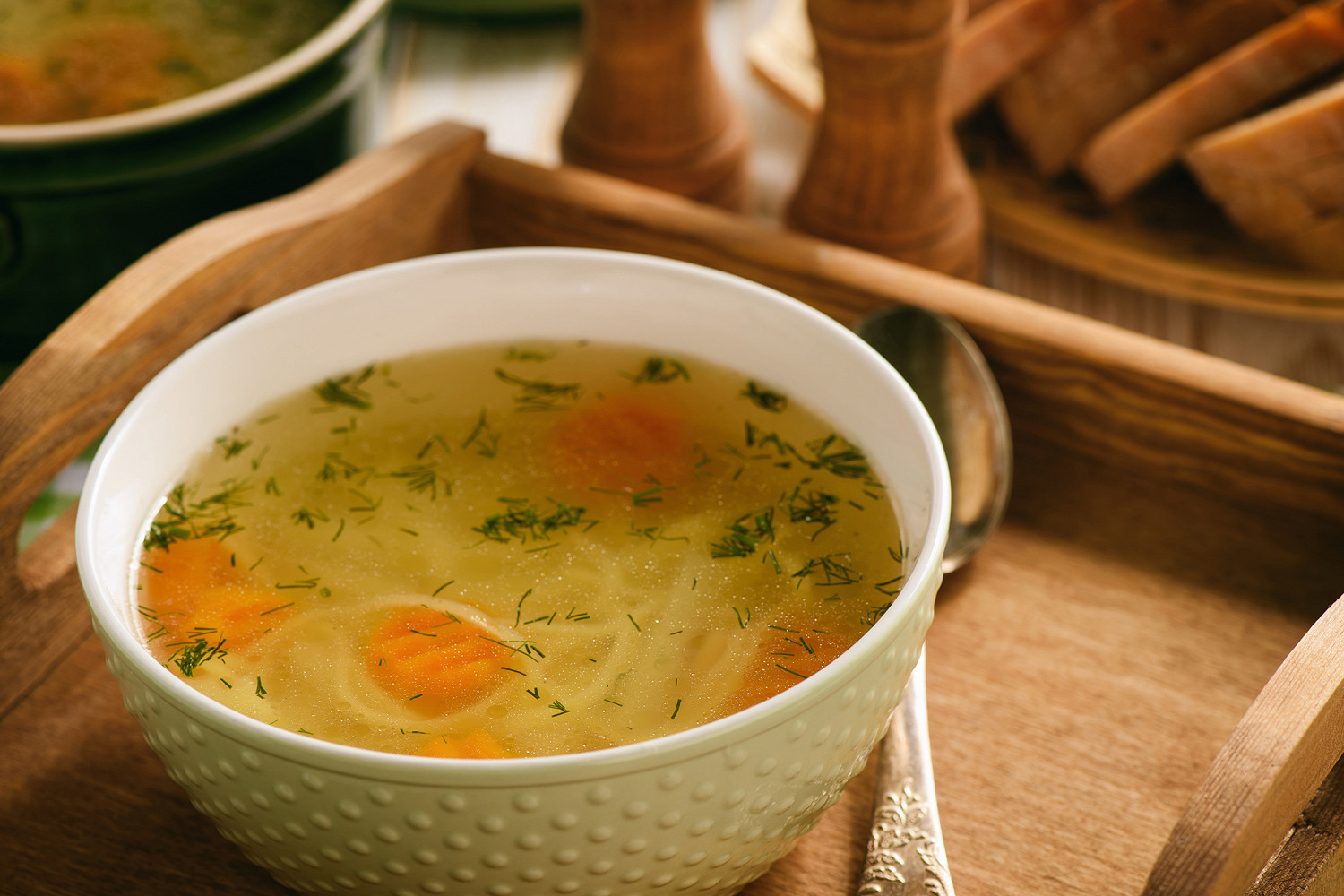 Обычные бульоны — классический куриный, мясной, рыбный, овощной или из индейки — тоже полезны. Они легко усваиваются, хорошо насыщают, восполняют дефицит минералов и белка. Самый универсальный — куриный, не слишком плотный и самый нейтральный по вкусу.