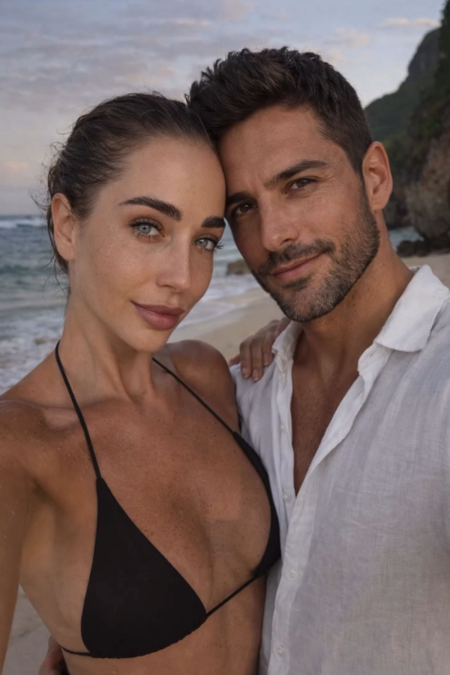 Если хотите представить себя с парнем на итальянском побережье, подойдет такой промпт: «Я и молодой человек идем вместе, между нами чувствуется легкая химия, едва заметные улыбки, легкий флирт, Позитано, Италия, одежда нежно-желтого цвета, утренний свет, естественный момент, запечатленный на камеру, реалистичное фото».