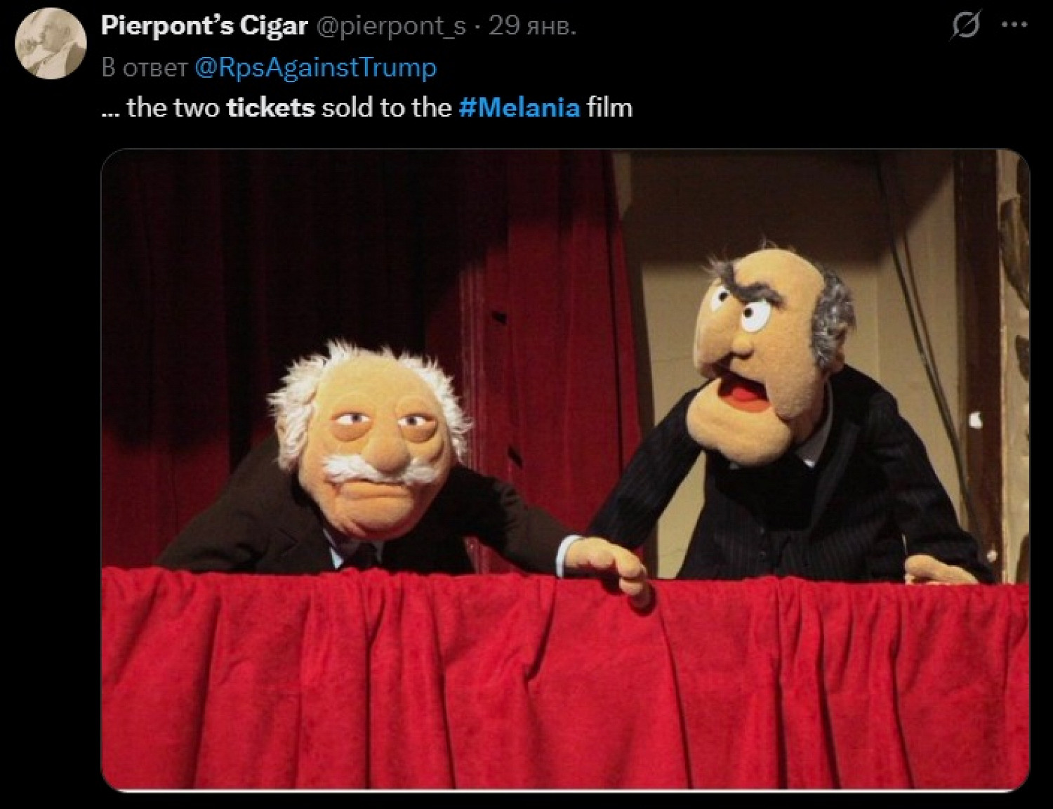 «Театр провинциального городка, середина недели. Продано больше билетов, чем на „Меланию“ по всему миру»