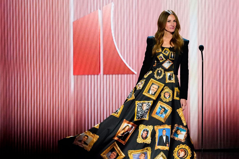 «Нам всем нужен такой друг»: Джулия Робертс надела платье с портретами Джорджа Клуни
