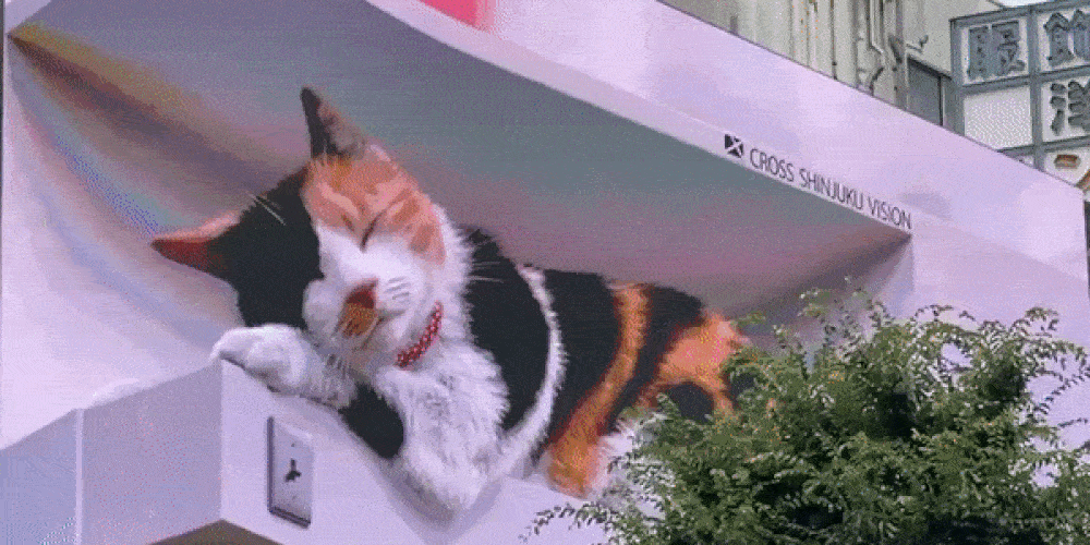 В Японии появился гиперреалистичный 3D-кот. Его рост — где‑то два этажа
