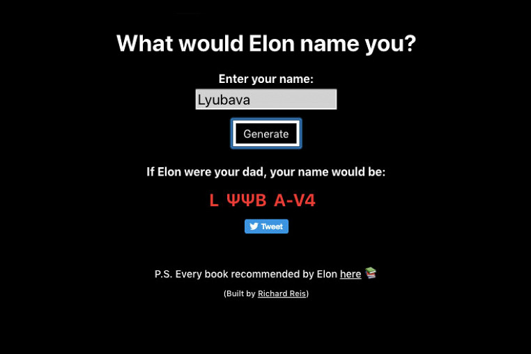 Как бы вас звали, если бы вашим отцом был Илон Маск? Проверьте на этом сайте