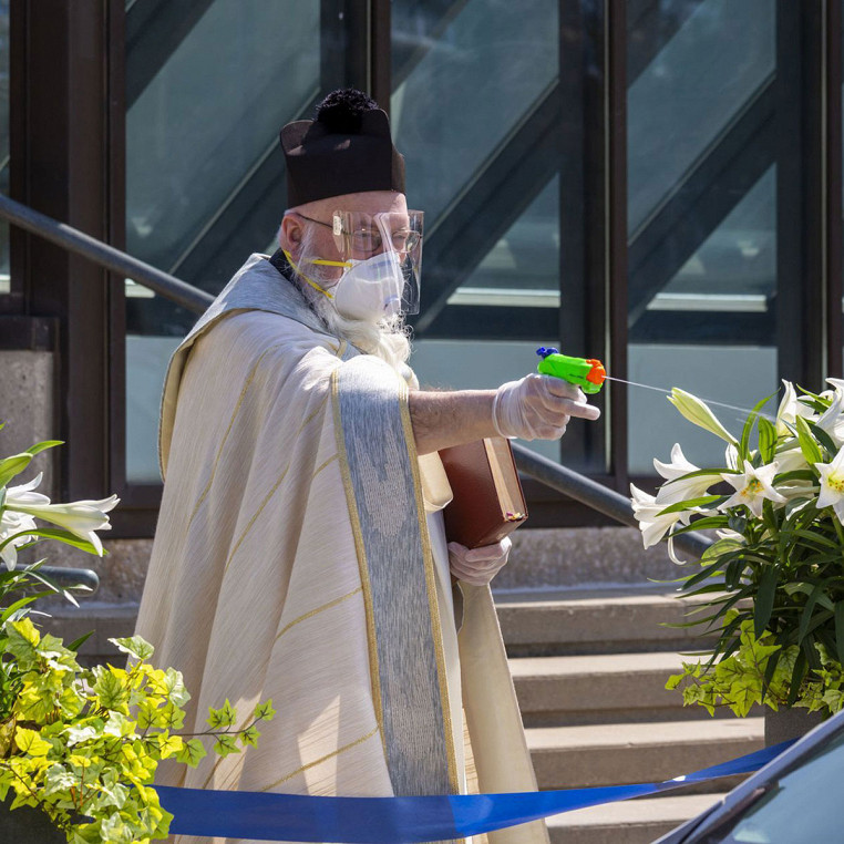 Священник благословил прихожан из водяного пистолета и стал мемом
