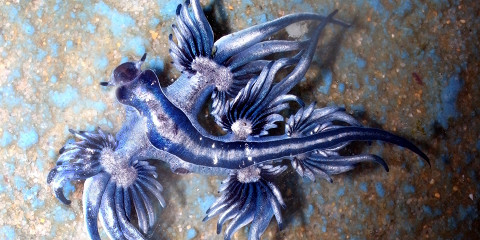 «Голубой дракон» (Glaucus atlanticus) достигает всего трех сантиметров в длину, но представляет серьезную опасность для человека. Моллюск питается другими ядовитыми животными (например, португальским корабликом), концентрирует в организме их яд и затем использует его, чтобы парализовать новую добычу. У человека укус «голубого дракона» вызывает болезненные ожоги.