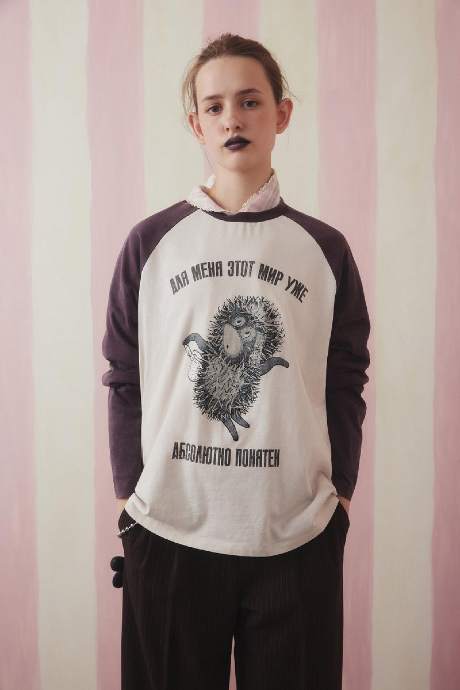 В дроп вошли футболки и лонгсливы, на которых персонажи анимационной студии дополняют мемные фразы. К примеру, Ежик в тумане сопровождается высказыванием Идущего к реке «Для меня этот мир уже абсолютно понятен», а попугай Кеша ― надписью «Ochen’ bizi».
