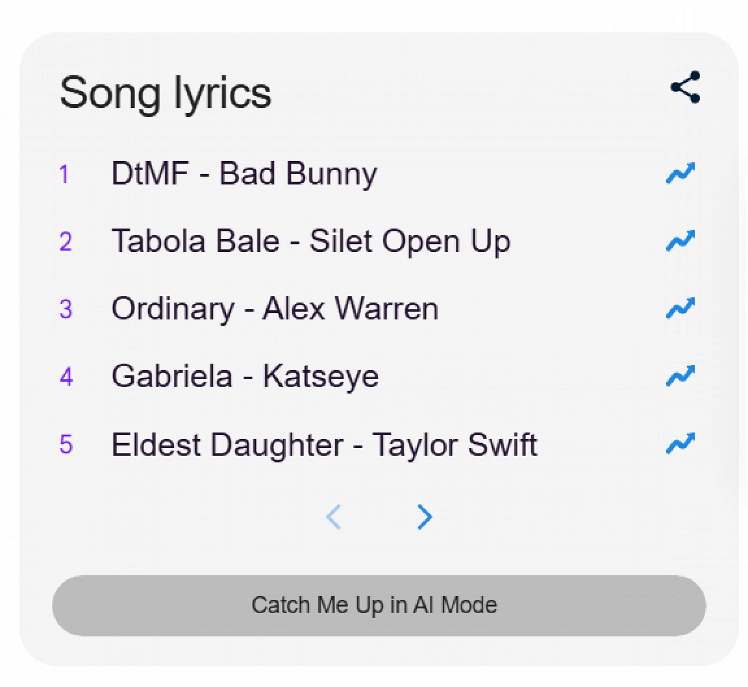 Из компьютерных игр чаще всего искали Arc Raiders, Battlefield 6 и Strands, из текстов песен ― «DtMF» Bad Bunny, «Tabola Bale» Silent Open Up и «Ordinary» Алекса Уоррена.