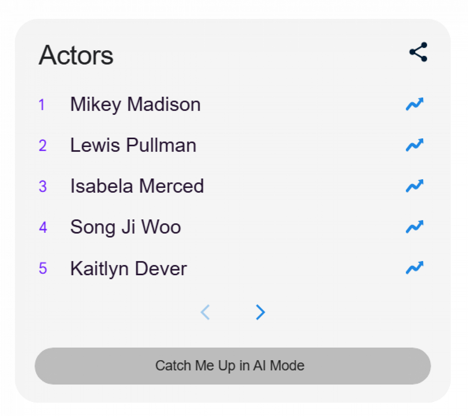 В категории актеров и актрис наибольший интерес у пользователей был к Майки Мэдисон. За ней следуют Льюис Пуллман и Изабела Мерсед.