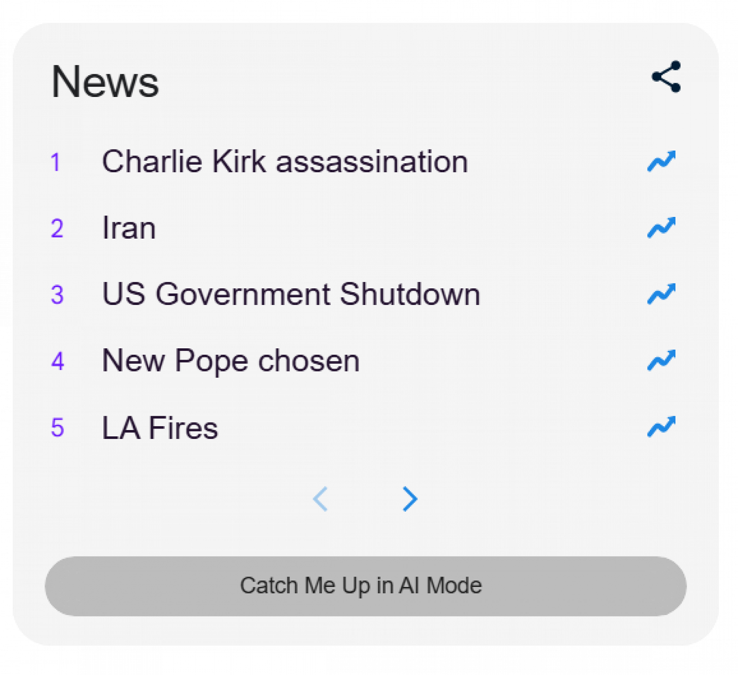 Новости, которые привлекли наибольшее внимание в 2025 году, ― убийство Чарли Кирка, события в Иране и приостановка работы правительства США. Топ-3 популярных персон: D4vd, Кендрик Ламар и Джимми Киммел.