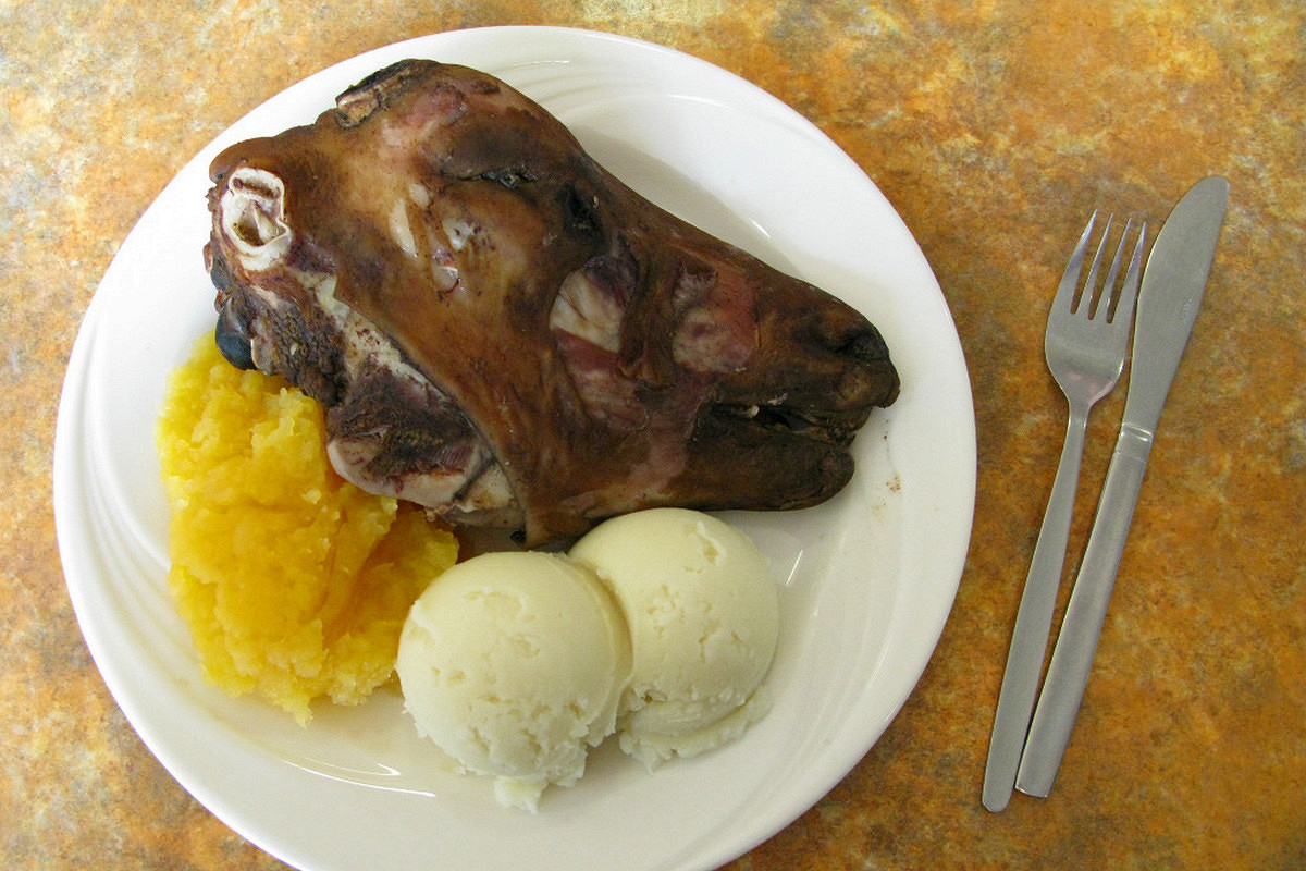 На втором месте еще одно блюдо родом из Исландии ― торраматур (thorramatur). Это сет из нескольких традиционных национальных деликатесов, которые едят с середины января по середину февраля. В стандартный набор входят ферментированное мясо акулы, копченая баранина, овечья голова и кровяные колбаски. Вяленую рыбу и мясные продукты нарезают тонкими ломтиками или небольшими кусками и подают с ржаным хлебом и маслом.