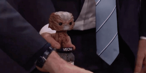 Одиннадцать поместили в стакан с водой, Уилла — на Генри, а Векну — на Уилла. Фигурку Стива поставили на край стола, после чего Росс Даффер столкнул ее на пол, вызвав возгласы в зале.
