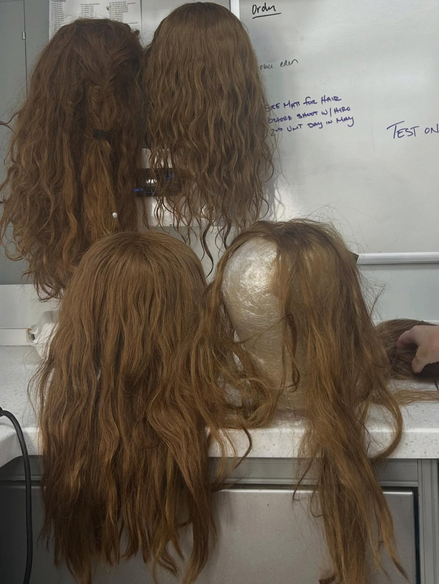 На снимках можно увидеть наряд Холли — синее платье и сапоги, отсылающие к образу Дороти из «Волшебника страны Оз», — и костюм Векны, включающий коричневый пиджак с красным галстуком. На другом закадровом фото показаны четыре парика Макс.