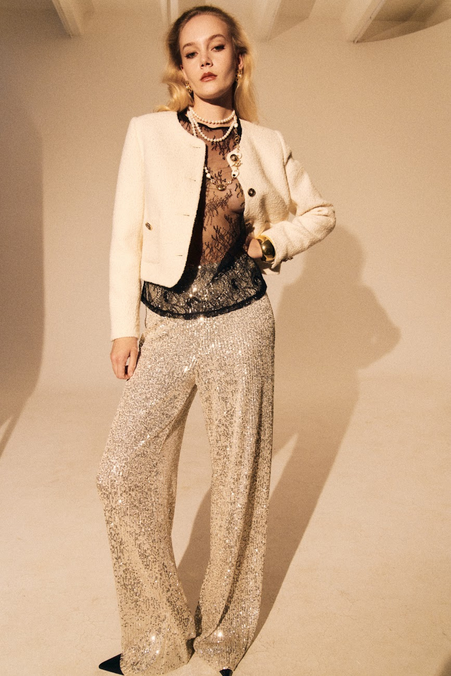 «Это капсула, в которой сочетаются утонченная вечерняя эстетика и безупречный комфорт», — говорится в пресс-релизе бренда. Для вещей использовали люрекс и пайетки. Платьям и костюмам придали архитектурные силуэты.