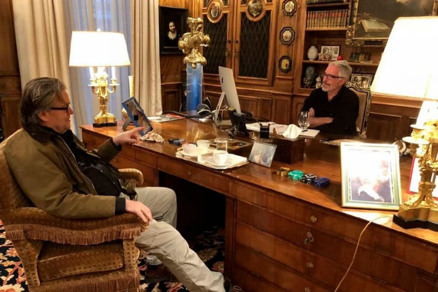 На другом снимке с неизвестной женщиной запечатлен миллиардер Билл Гейтс. В материалах есть также общие фотографии Эпштейна с певцом Майклом Джексоном, режиссером Вуди Алленом, миллиардером Ричардом Брэнсоном, философом Ноамом Хомским, Дональдом Трампом и бывшим советником Трампа Стивом Бэнноном.