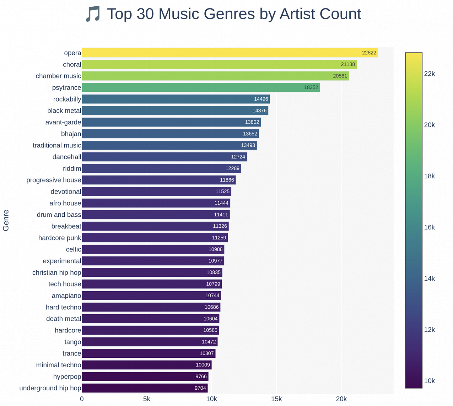 Около 13,5% треков (примерно 34,6 млн) на платформе помечены как explicit из-за нецензурной лексики. Больше всего артистов, представленных на Spotify, относятся к жанру оперы (22,8 тыс.), за ним следуют хоровая (21,2 тыс.) и камерная музыка (20,5 тыс.).