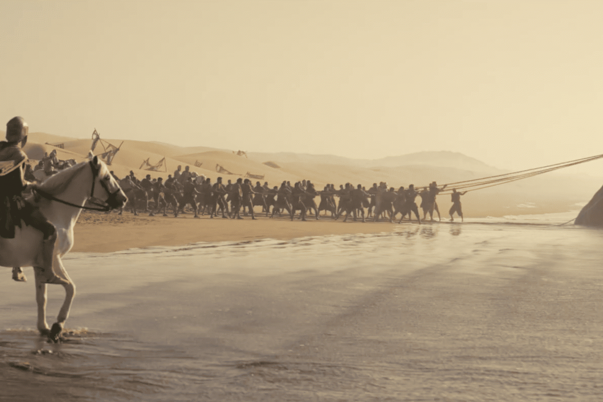 Большая часть съемок проходила в открытом море. «Мы вывозили актеров, которые играют команду корабля Одиссея, на настоящие волны, в реальные места. И да, оно безгранично, ужасающе, прекрасно и благосклонно, по мере того как условия меняются. Мы действительно хотели передать, насколько тяжелыми были бы эти путешествия для людей и тот прыжок веры, который они совершали в неисследованном, не нанесенном на карты мире», — поделился впечатлениями режиссер.