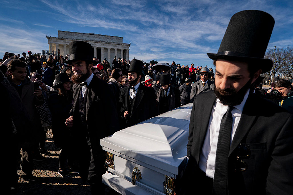 По данным Fox News, у гроба пенни выступили актеры. Один из них был в образе президента Авраама Линкольна, чей профиль украшал ее аверс. Кроме того, появились его жена Мэри Тодд, убийца Линкольна Джон Уилкс Бут, а также экс-президенты Джордж Вашингтон и Томас Джефферсон.