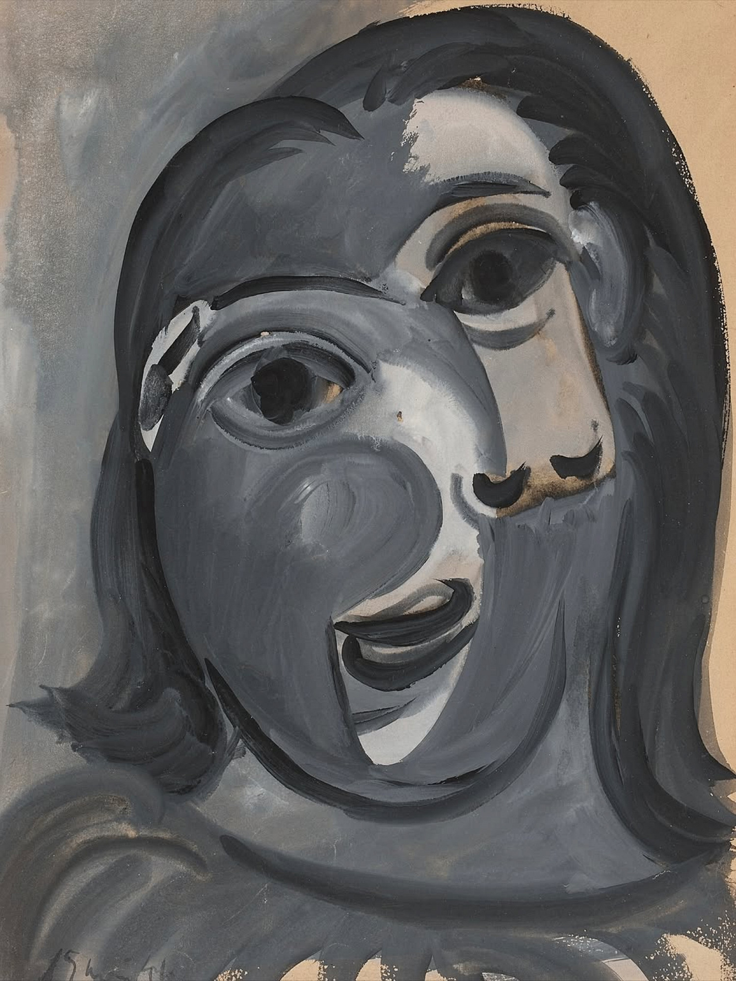 Картина «Голова женщины» была создана в Париже в период немецкой оккупации. Как отметил Оливье Пикассо, ее мрачная цветовая гамма отражает тяжелые личные и исторические обстоятельства, в которых находился художник.