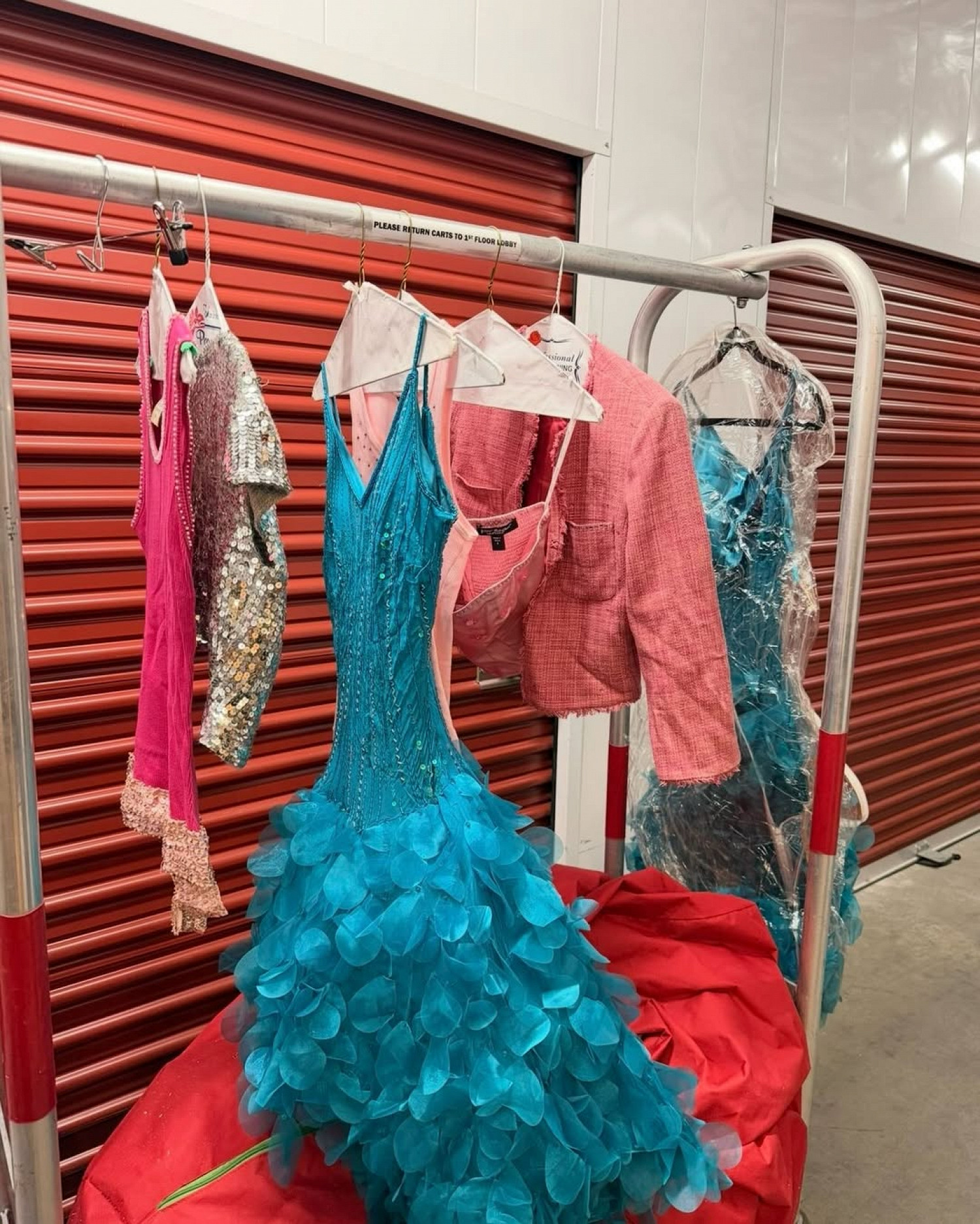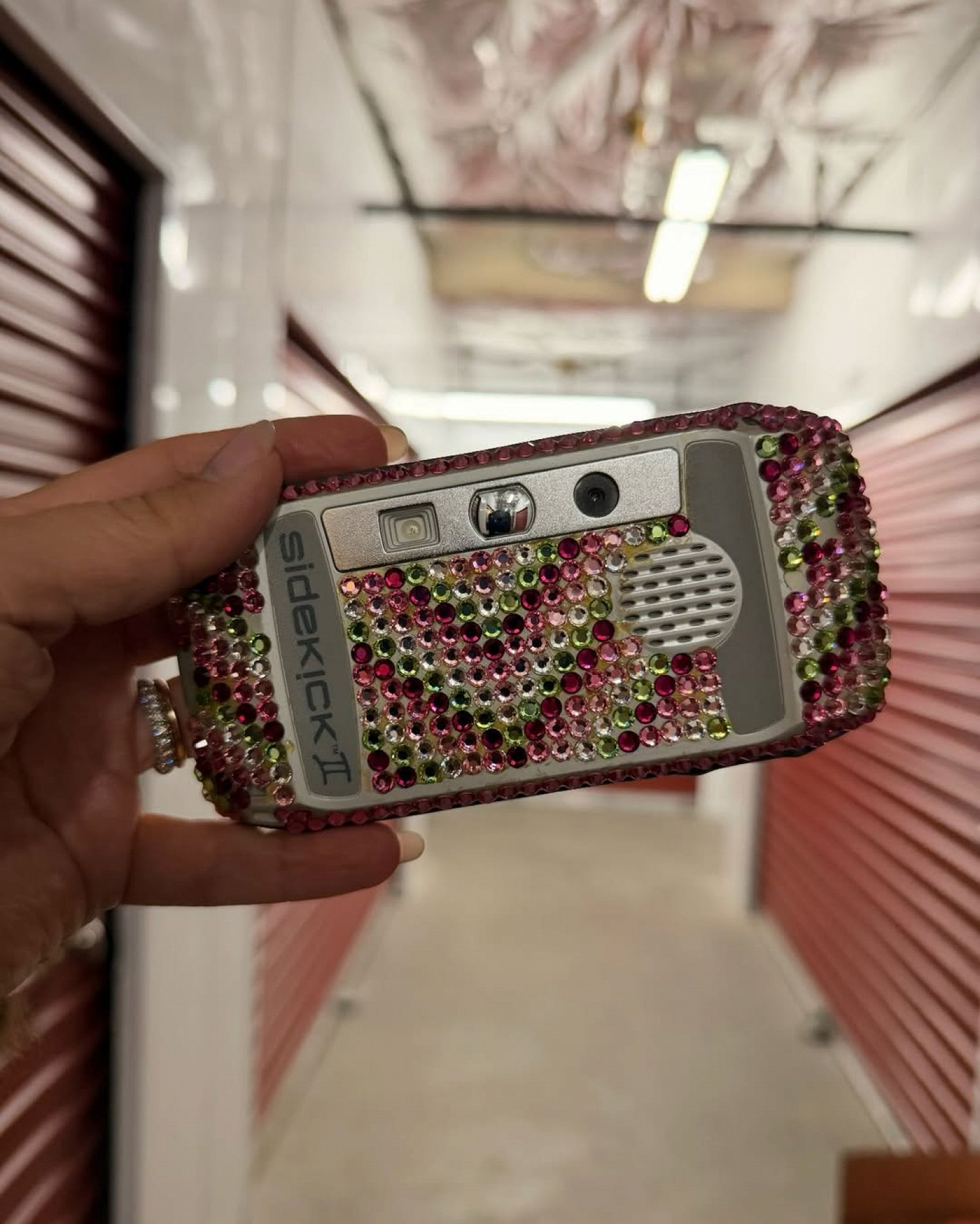 На видео актриса вновь облачается в знаковые наряды своей героини: синее платье, розовый комплект из юбки и футболки и другие. Она также нашла полностью усыпанный стразами телефон Шарпей.