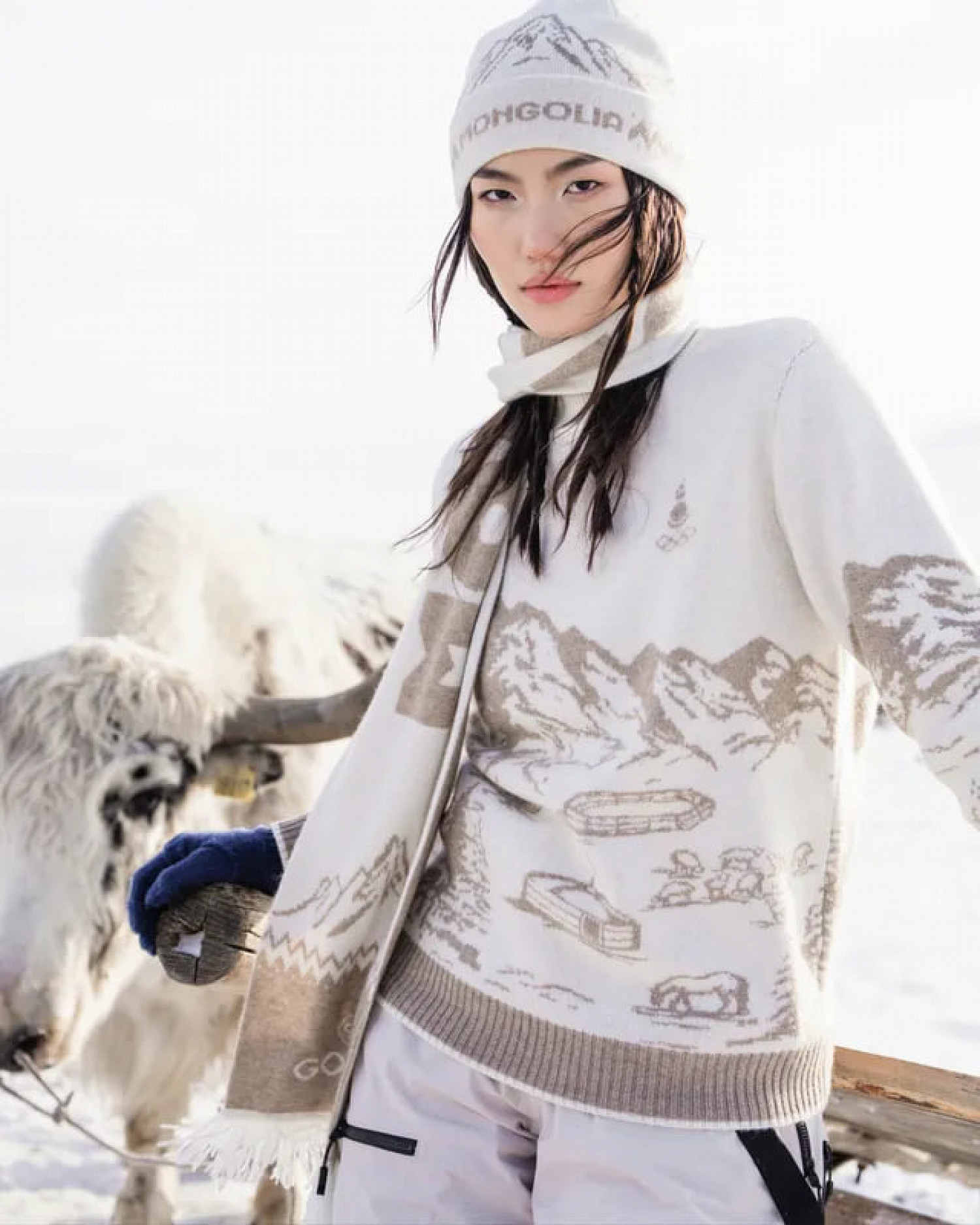 Коллекция вдохновлена одеждой Великой Монгольской империи XIII–XV веков. Для нее использовали основные традиционные элементы, такие как функциональный разрез на юбке, обеспечивающий свободу движений, и высокий воротник, защищающий от ветра и холода. Одним из основных материалов стал монгольский кашемир с шелковой отделкой.