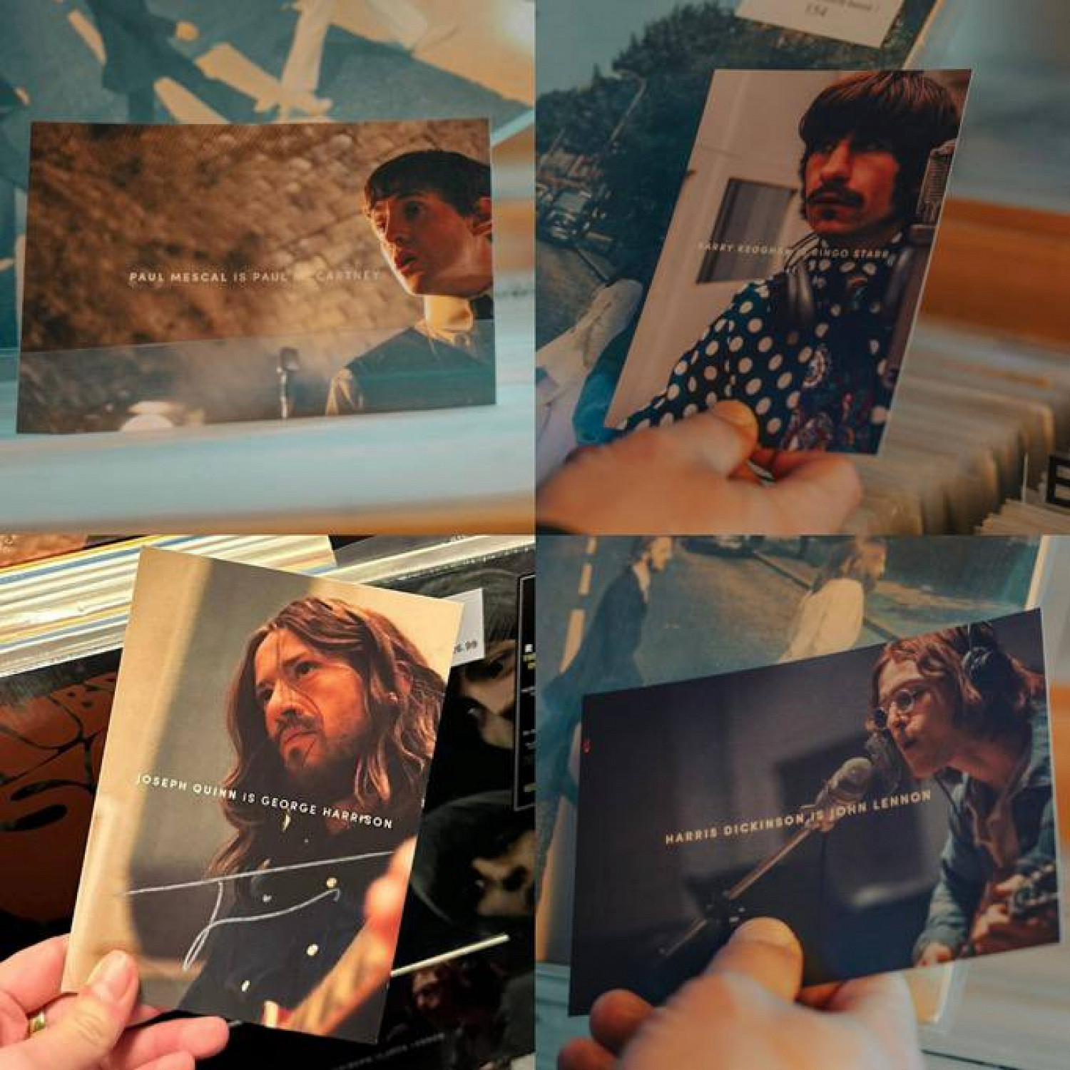 В соцсетях опубликованы первые изображения из байопиков о The Beatles, которые снимает режиссер Сэм Мендес («1917»). Источником стали четыре открытки с актерами, исполнившими главные роли.