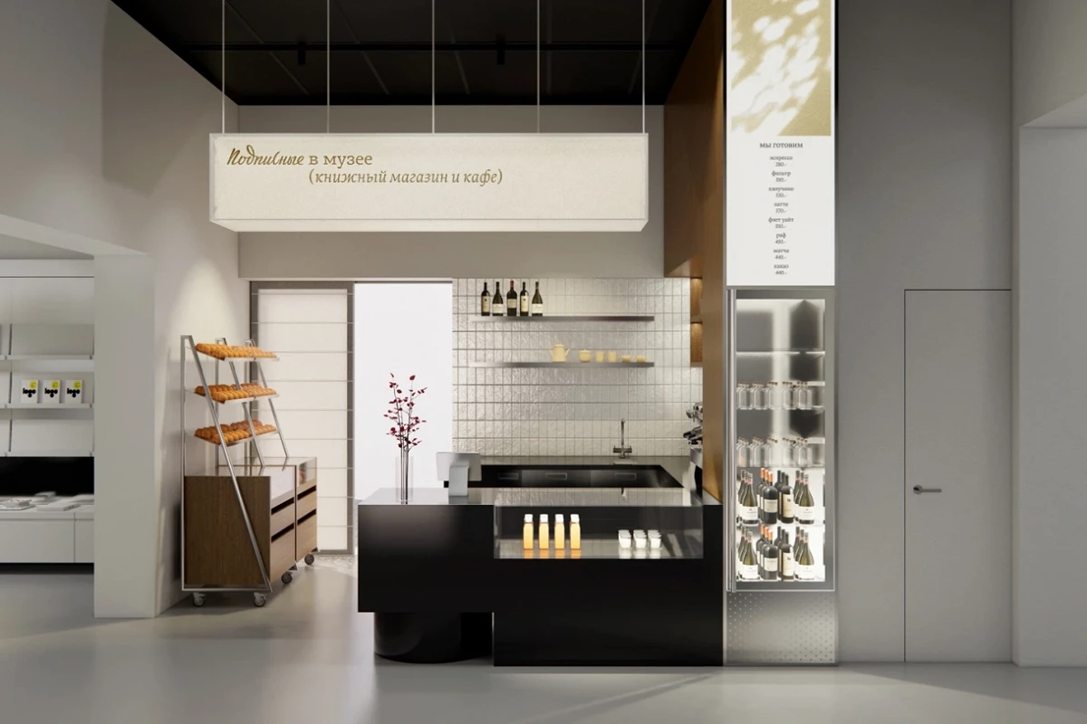 «Подписные в музее» станет многофункциональной средой для погружения в литературу и искусство: можно будет обсудить экспозицию с консультантами-знатоками или перекусить авторской выпечкой. Интерьер создали архитекторы бюро Aurore.